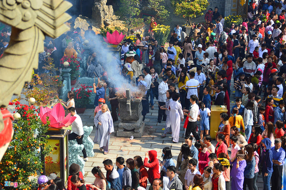 Hình ảnh hàng ngàn người dân và du khách đến chùa vãn cảnh, du xuân tại Đà Nẵng