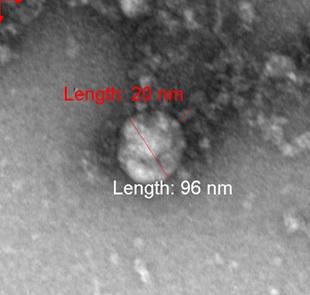 Hình ảnh được chụp bằng kính hiển vi điện tử truyền qua ở độ phóng đại 100.000x, và cho thấy một hạt virus tròn có đường kính khoảng 140 nanomet. Hình ảnh cũng cho thấy các nốt sần của virus, các vết phát triển trên bề mặt của nó dài khoảng 20 nanomet.