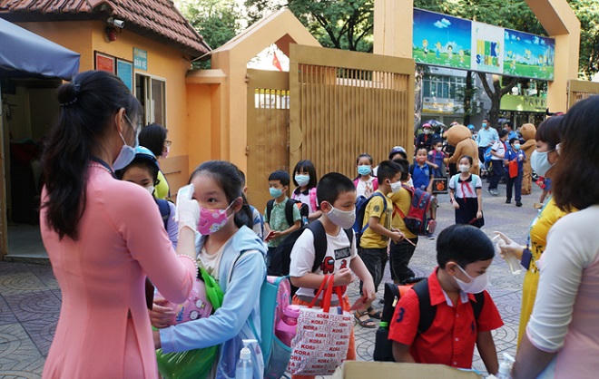 Trung tâm Kiểm soát bệnh tật TP HCM yêu cầu tất cả học sinh, phụ huynh, giáo viên… khi đến trường phải đeo khẩu trang để hạn chế nguy cơ lây truyền COVID-19.