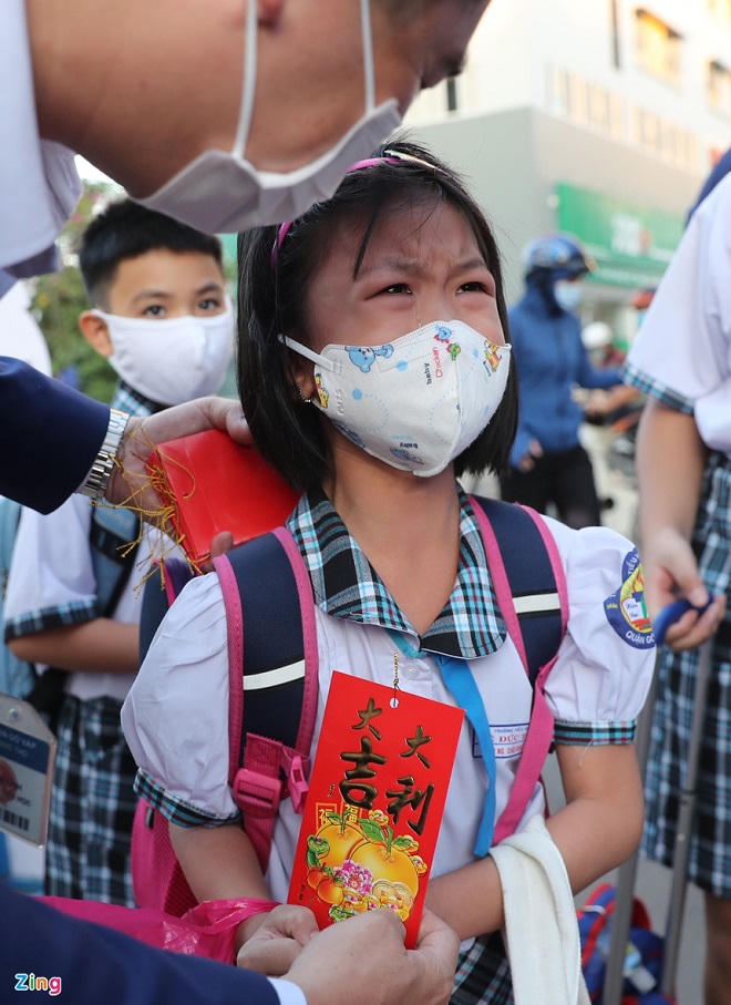 Tại TP HCM, học sinh trường Tiểu học Lê Đức Thọ (Gò Vấp) òa khóc khi trở lại trường. Ảnh Zing.