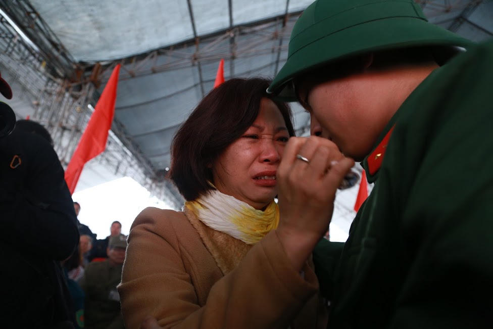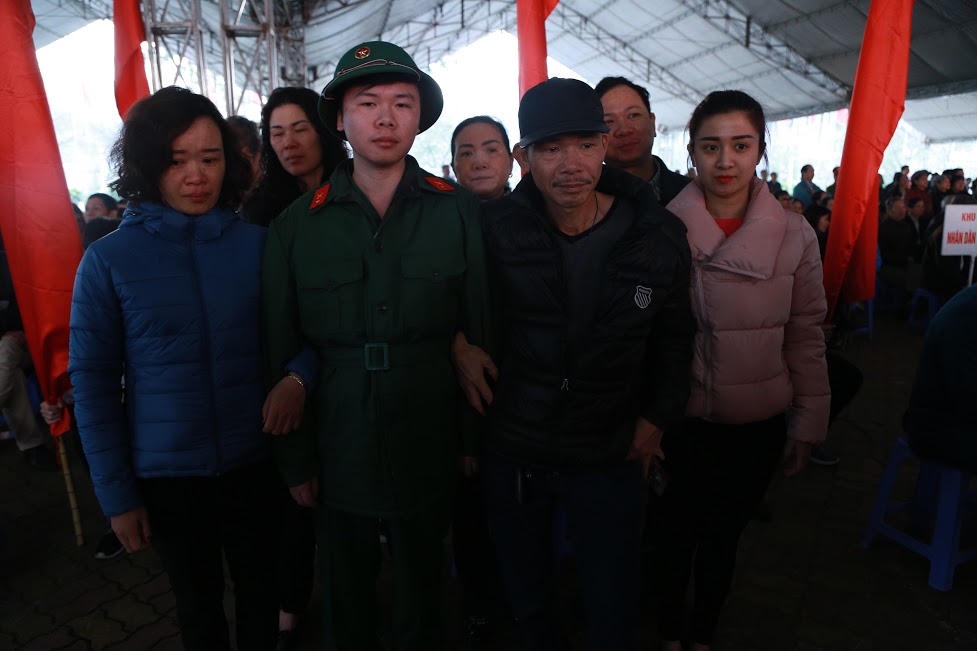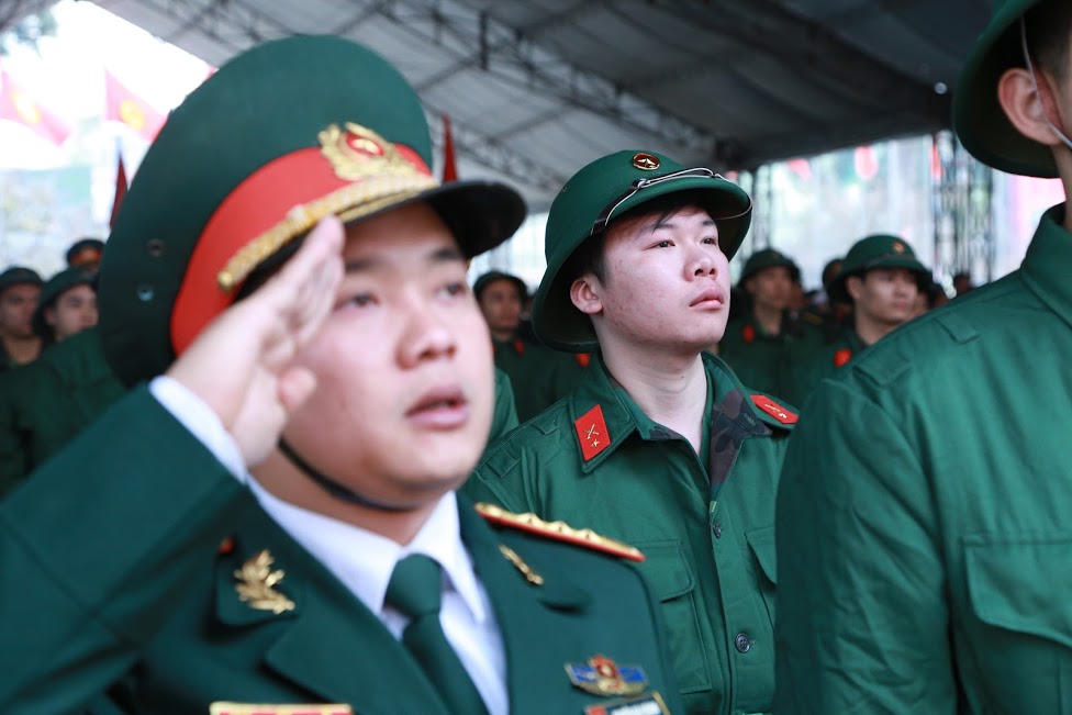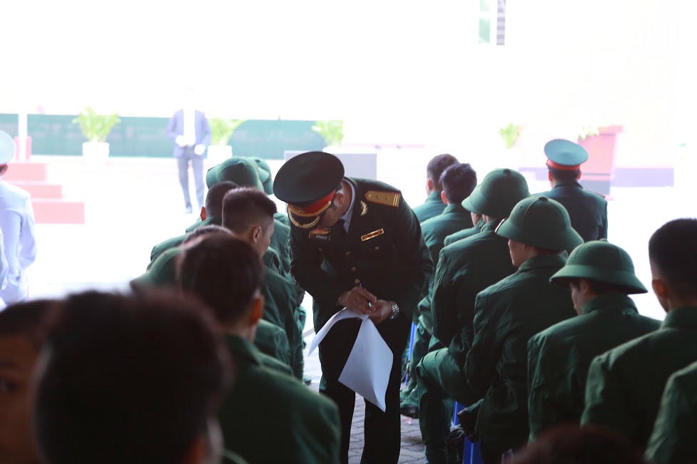 Khoảng 8h lễ giao nhận quân mới chính thức diễn ra song từ khoảng 7h tân binh đã sẵn sàng trong hàng ngũ. Đông đảo người thân, người dân địa phương tới để động viên, tiễn các chàng trai Hà Nội lên đường làm nhiệm vụ.