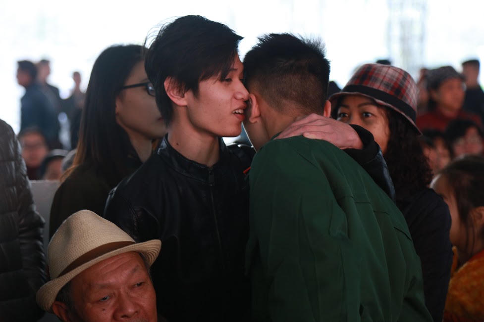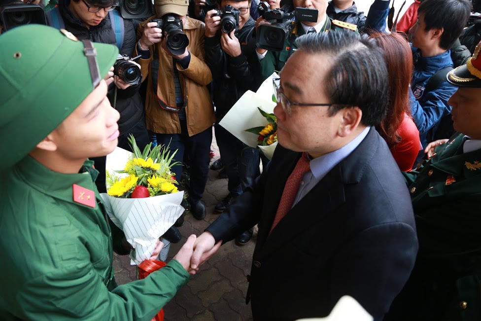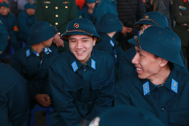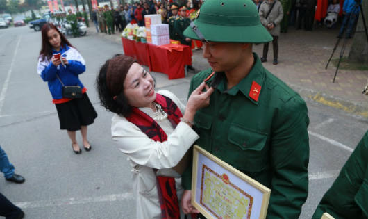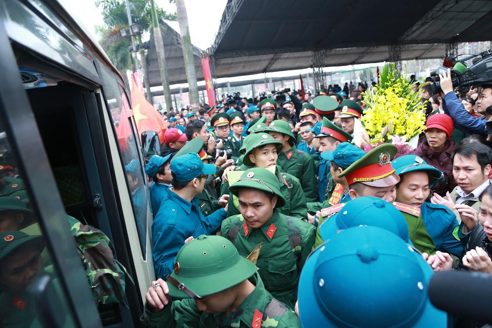 Không khí trong đợt giao nhận quân đầu năm diễn ra khá tưng bừng, nhiều nam thanh niên phấn chấn khi được lên đường nhập ngũ.
