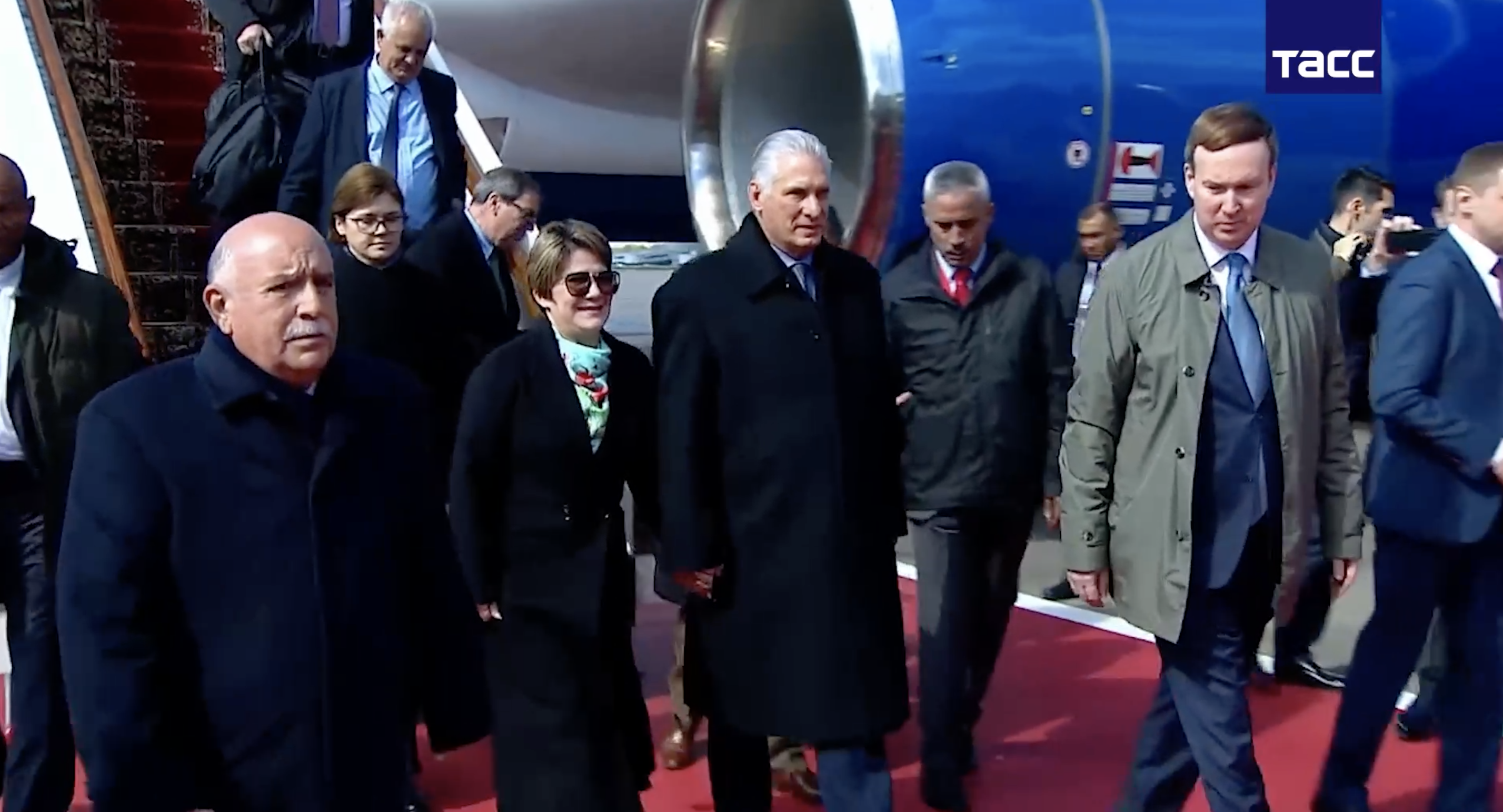 Chủ tịch Cuba Miguel Diaz-Canel tới thăm Nga dịp lễ kỷ niệm 80 năm Ngày Chiến thắng phát xít Đức trong Thế chiến II. Nguồn: Ảnh chụp màn hình. |