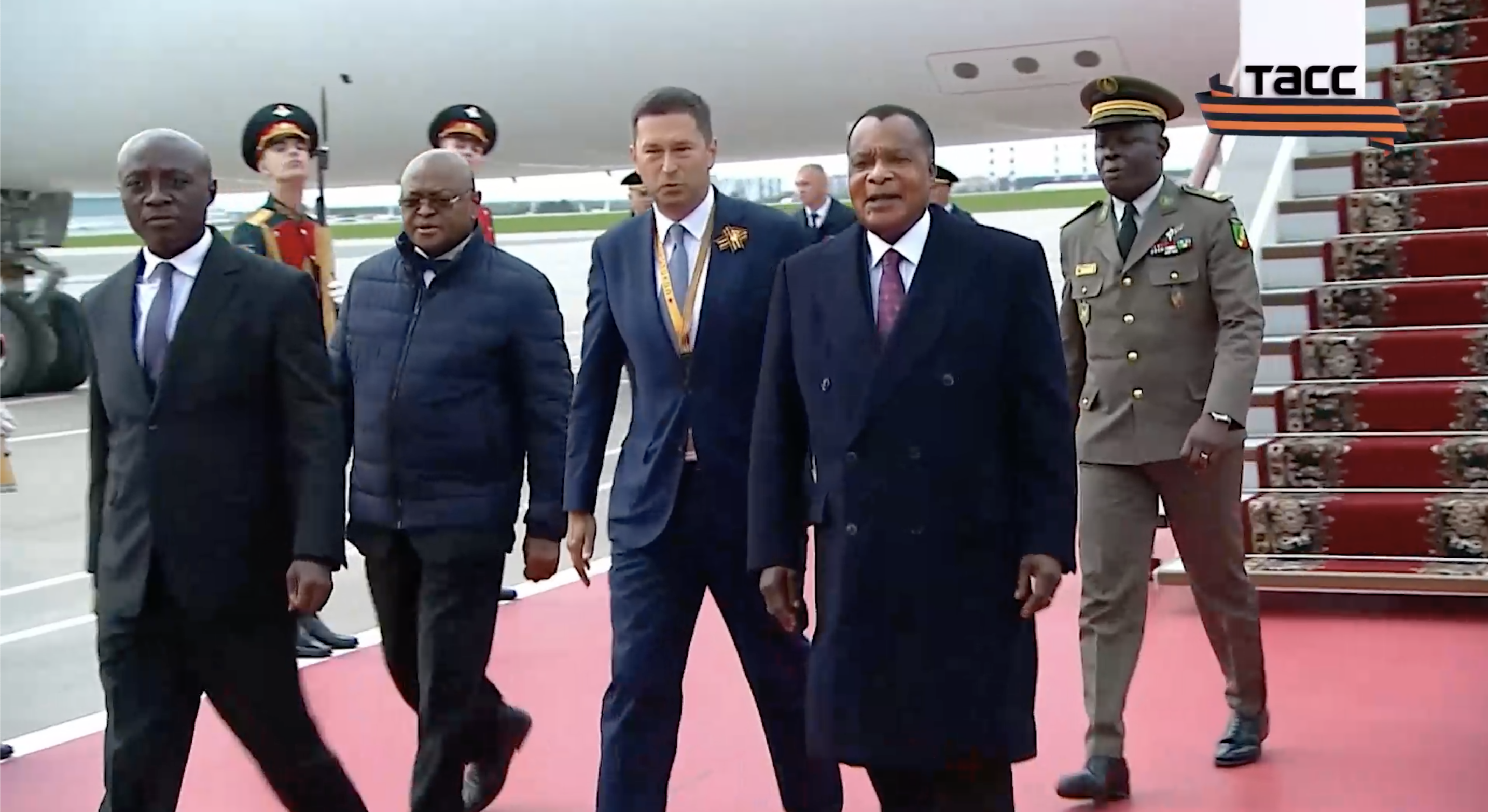 Tổng thống Cộng hoà Congo Denis Sassou Nguesso tới thăm Nga dịp lễ kỷ niệm 80 năm Ngày Chiến thắng phát xít Đức trong Thế chiến II. Nguồn: Ảnh chụp màn hình. |