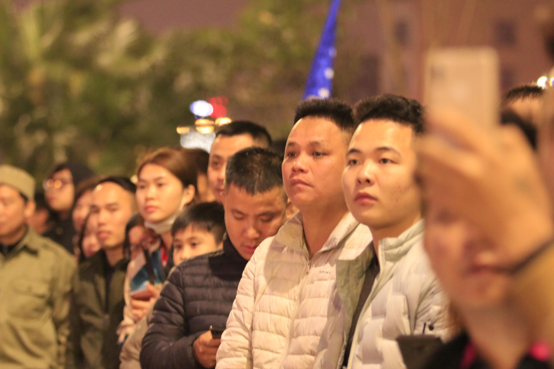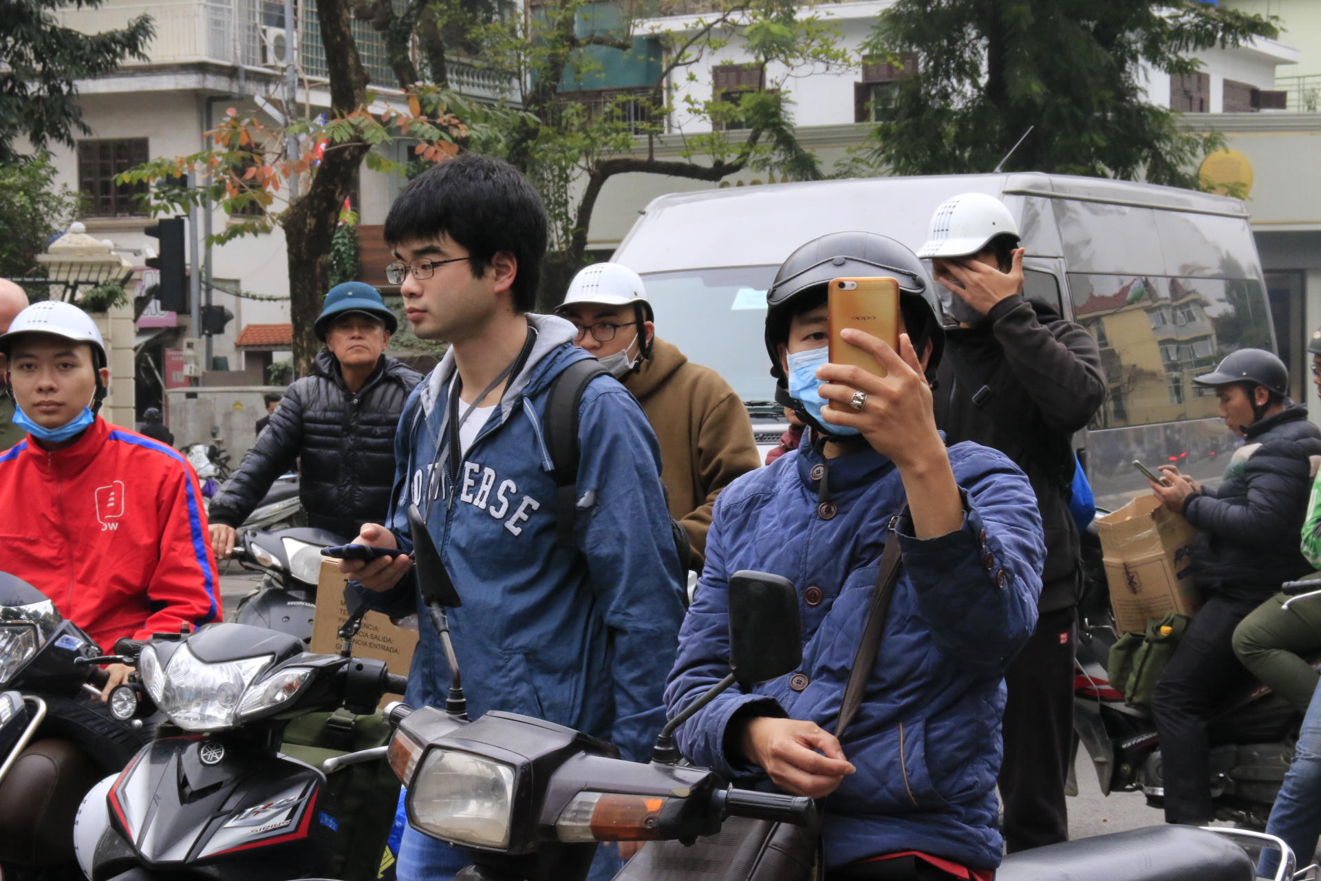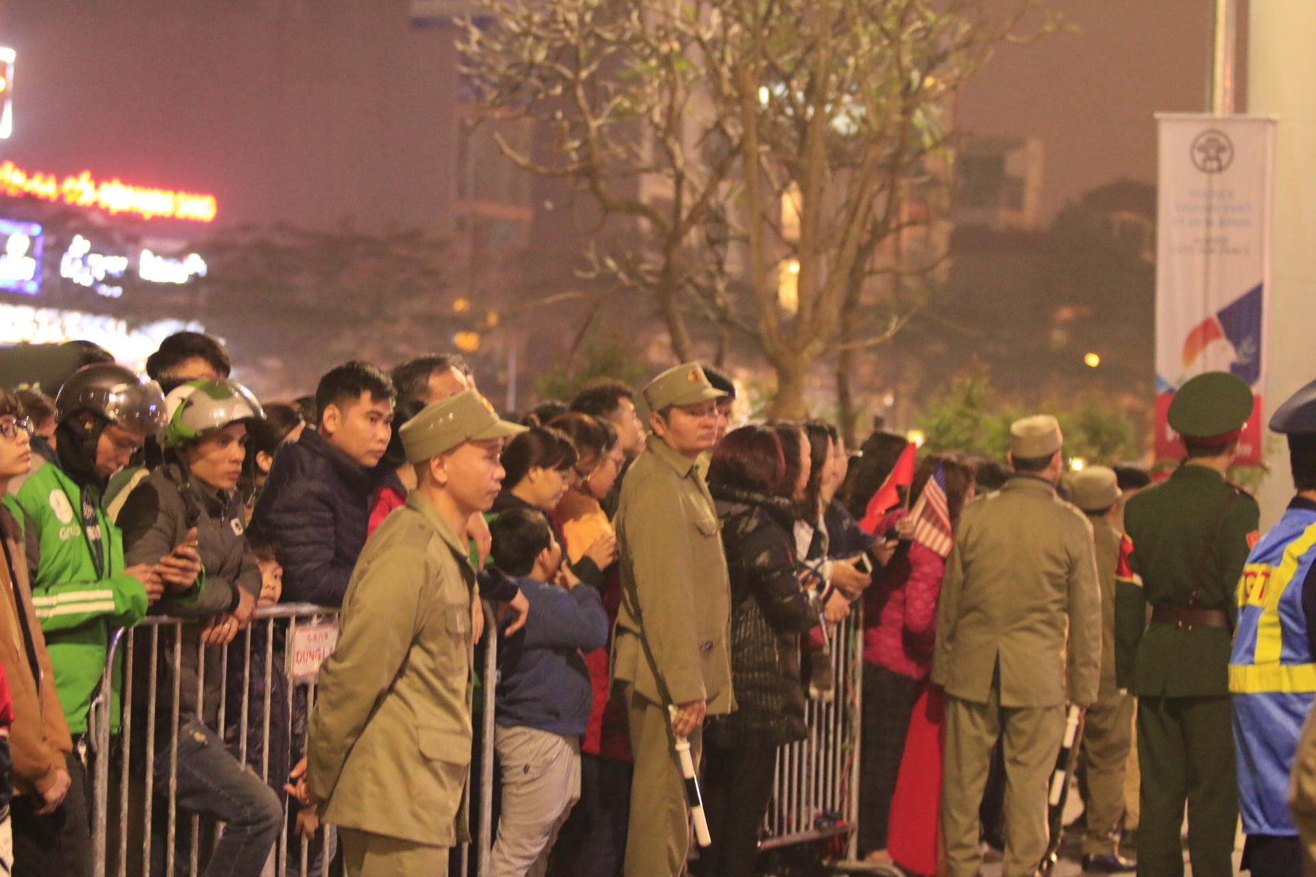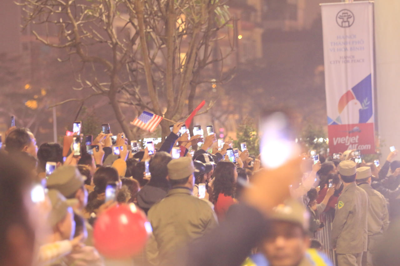 Tại đường Trần Duy Hưng, người dân bất chấp giá rét chờ đón Tổng thống Mỹ tối 26/2.