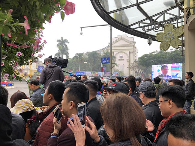 Người dân tập trung đông gần khách sạn Melia, Lý Thường Kiệt, với mong muốn được thấy tận mắt Chủ tịch Kim Jong Un.