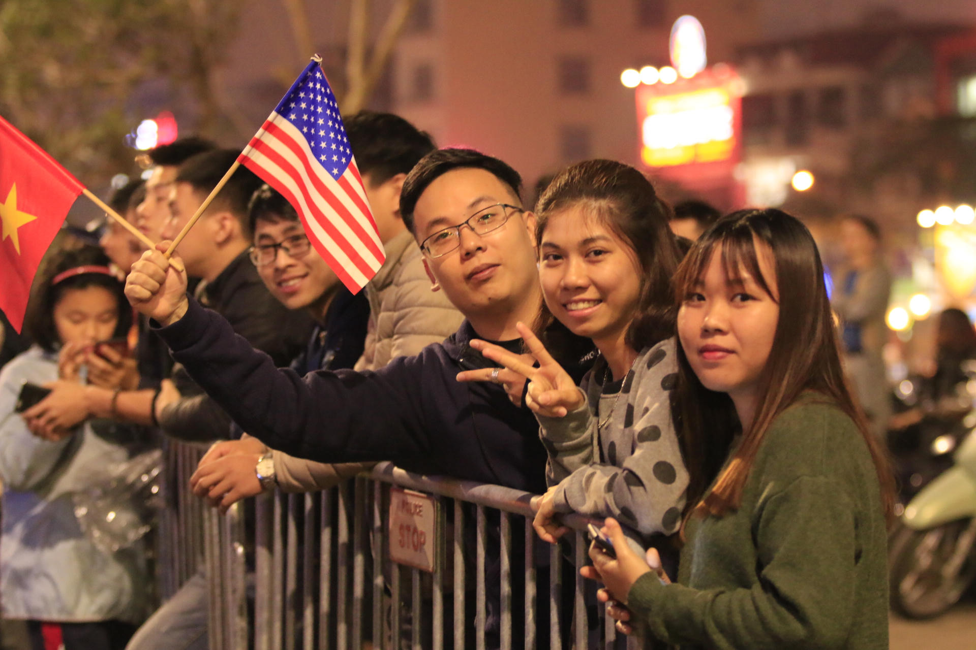 Tuyến đường Võ Chí Công, người già, trẻ em cũng tham gia chào đón ông Donald Trump.