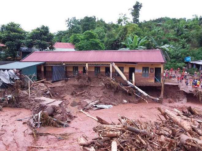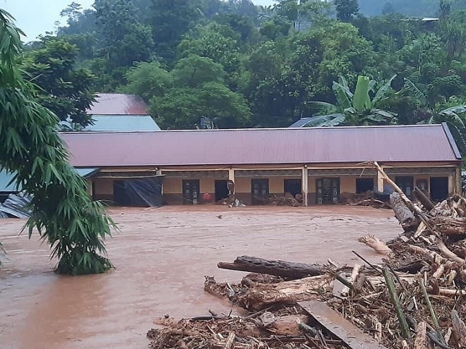 (PLVN) - Từ đêm 16/8 đến rạng sáng nay 17/8, mưa lớn kéo dài gây ra lũ quét tại địa bàn huyện Nậm Pồ, tỉnh Điện Biên khiến ít nhất 4 nhà dân bị cuốn trôi, trường Tiểu học Nậm Nhừ bị ngập trong nước đến gần 3m.