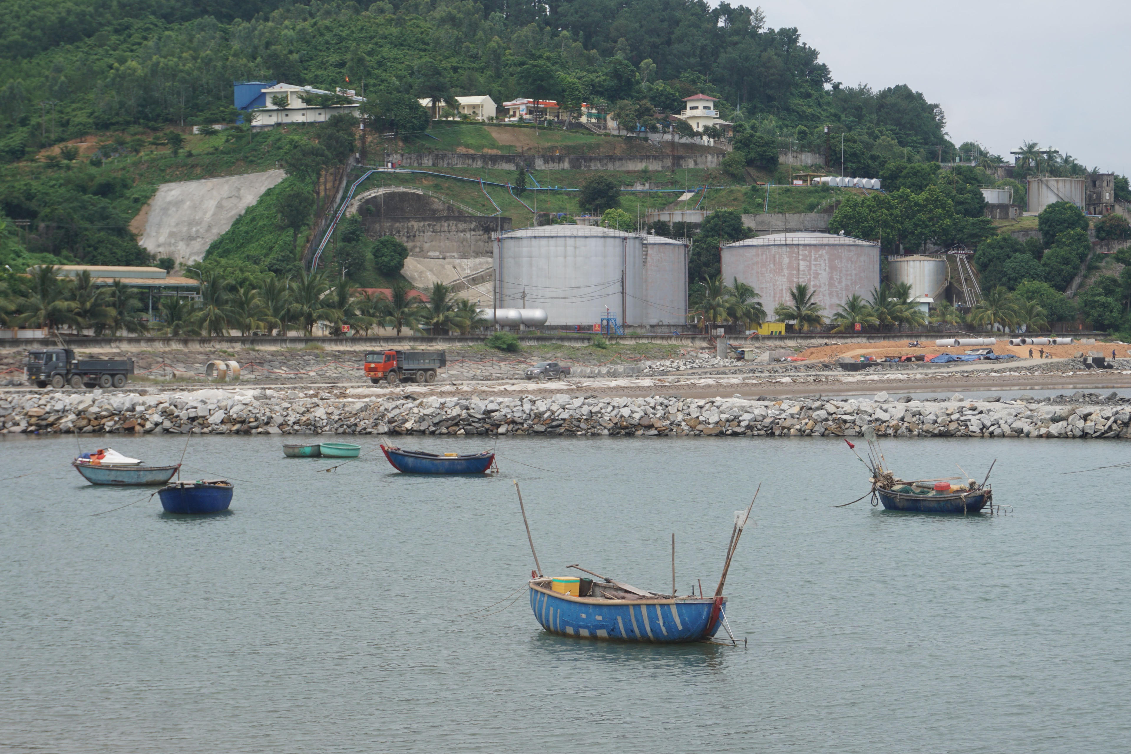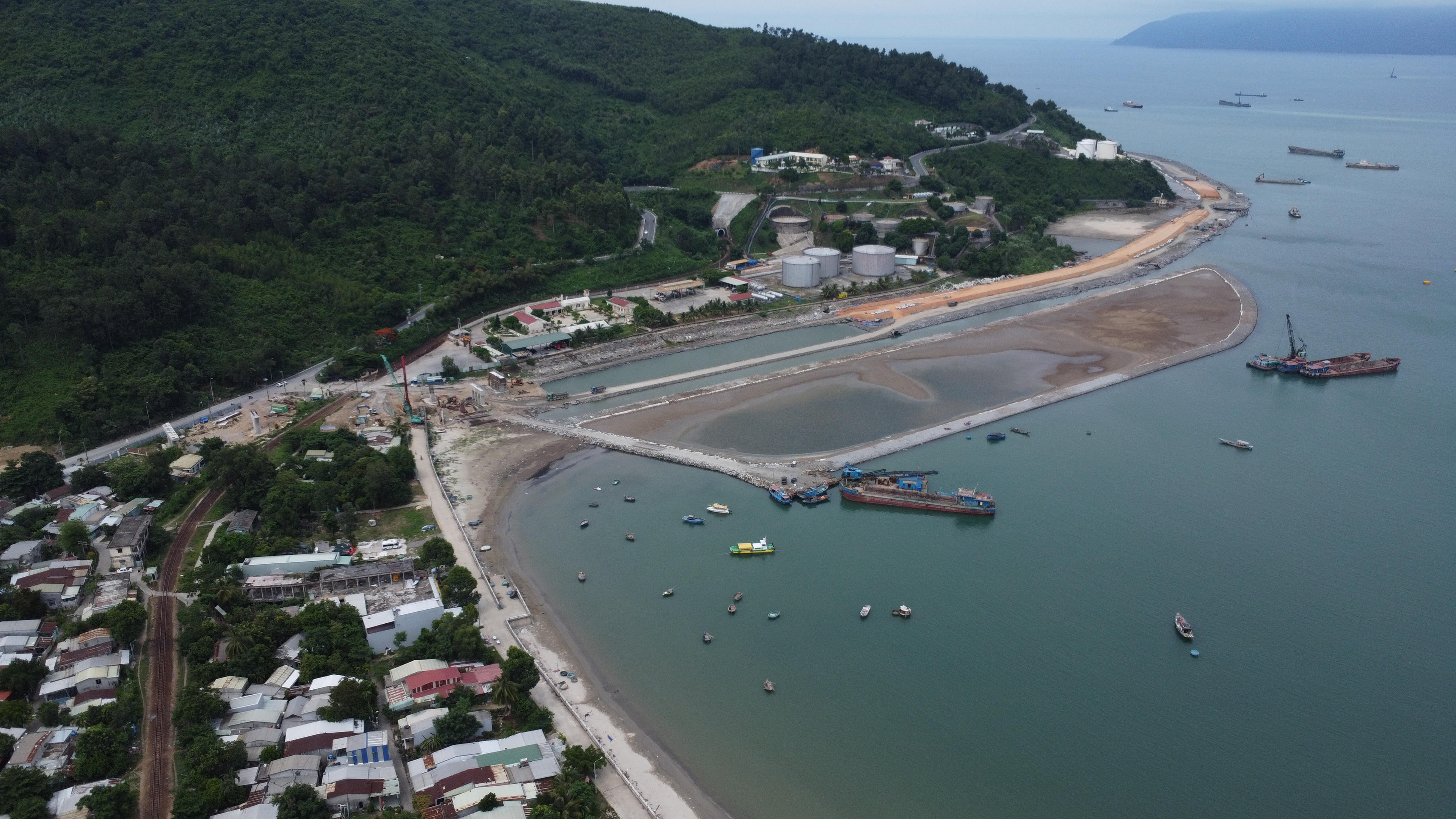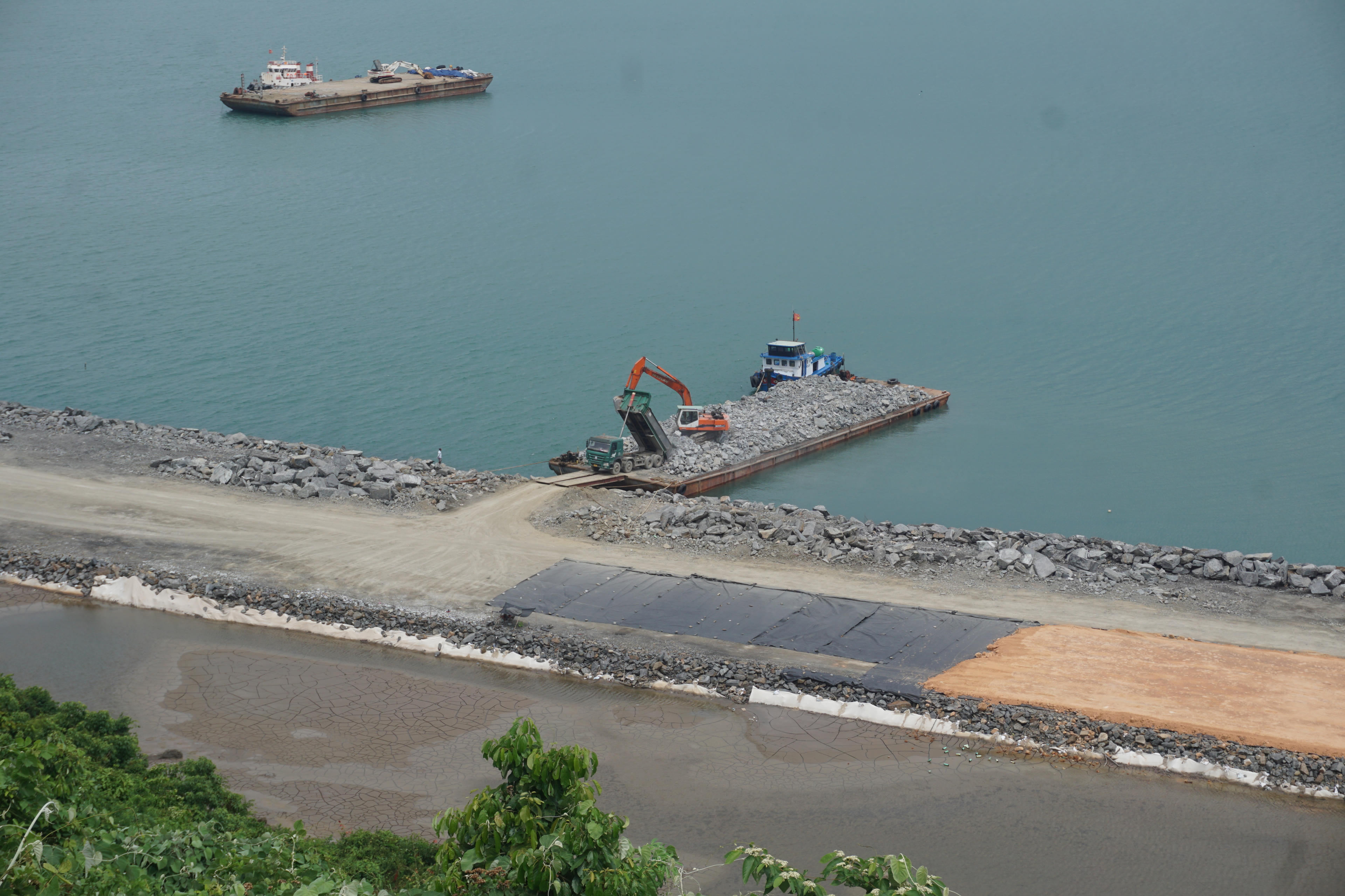 Trong đó, hạng mục đê và kè chắn sóng đã đạt 45,7% khối lượng thiết kế; hạng mục nạo vét luồng tàu và khu mặt nước đã đạt 54,1% khối lượng và hạng mục đường giao thông, hệ thống thoát nước đạt 66,1% khối lượng thi công.