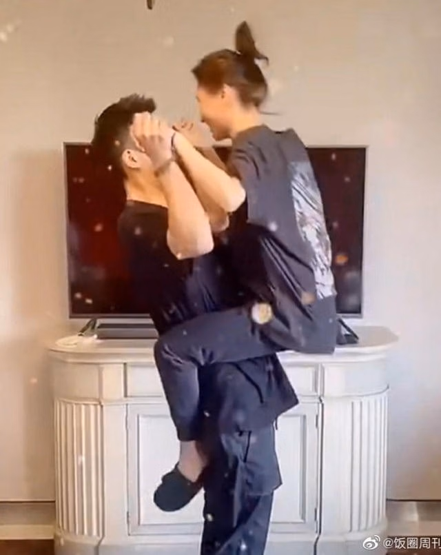Hình ảnh hạnh phúc của Đậu Kiêu và Hà Siêu Liên gây sốt mạng xã hội.