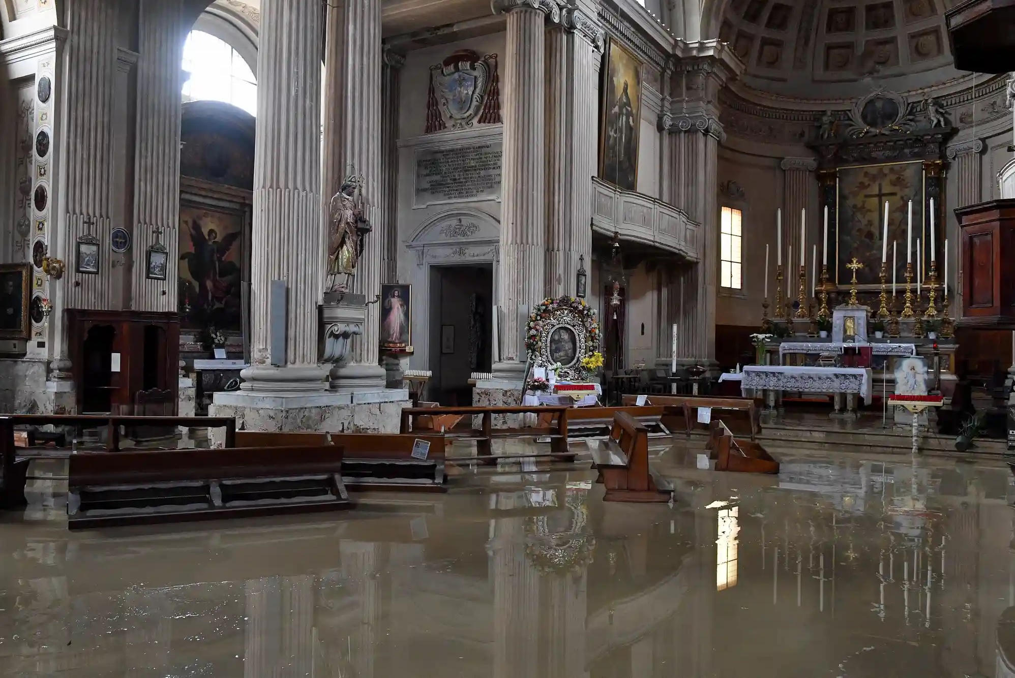Một nhà thờ bị ngập lụt ở Castel Bolognese. Ảnh: Reuters. |