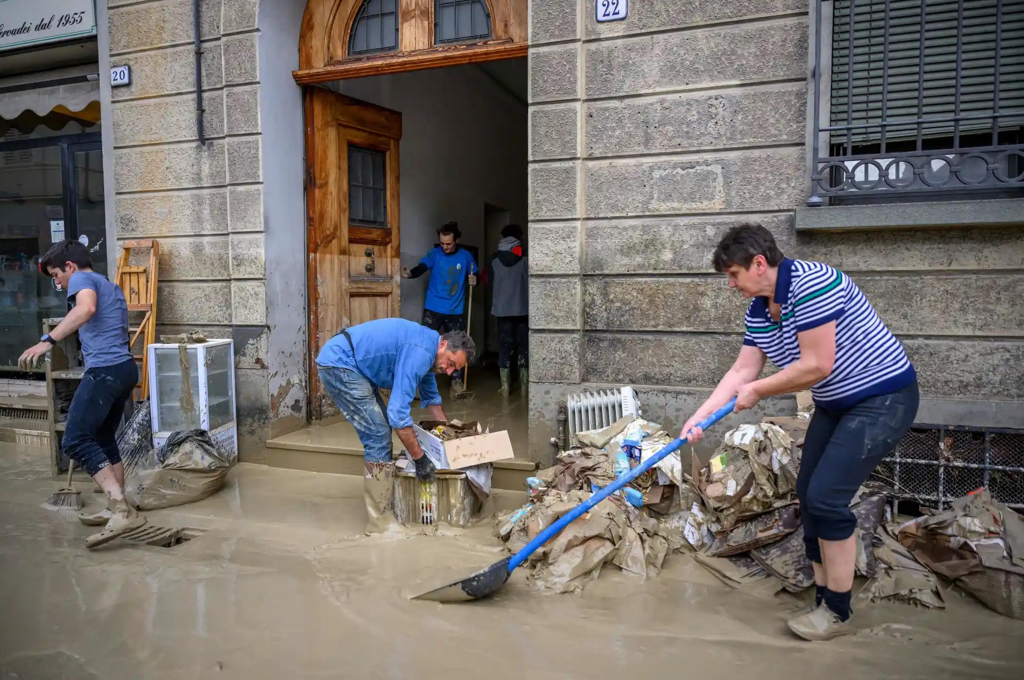 Người dân bắt đầu dọn sạch chất bẩn khỏi các đường phố ở Faenza. Ảnh: Getty. |
