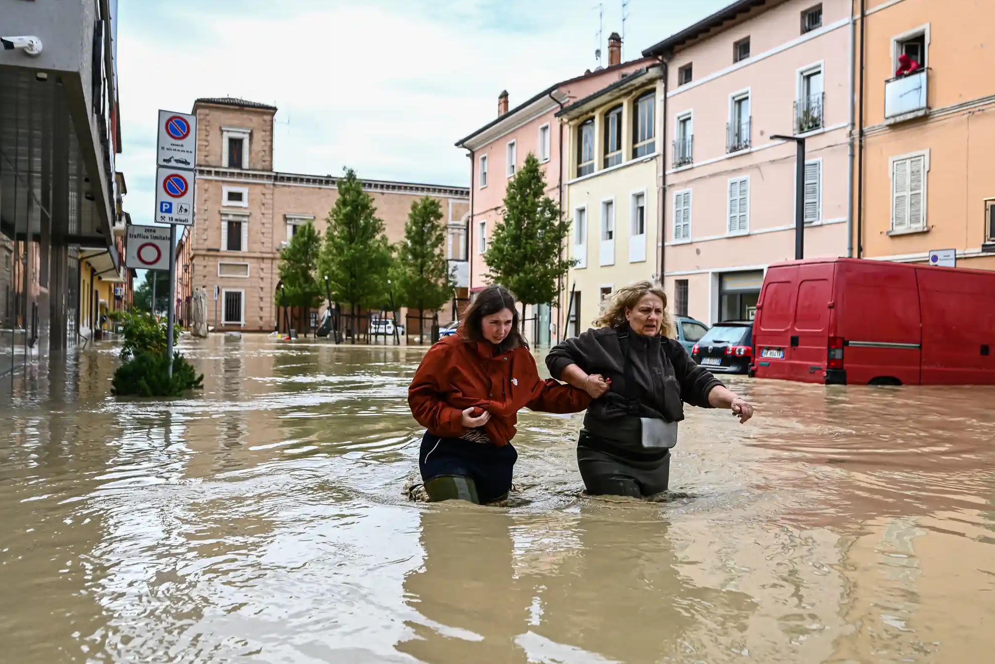 Người dân lội qua nước lũ ở Castel Bolognese, gần Imola. Ảnh: Getty. |