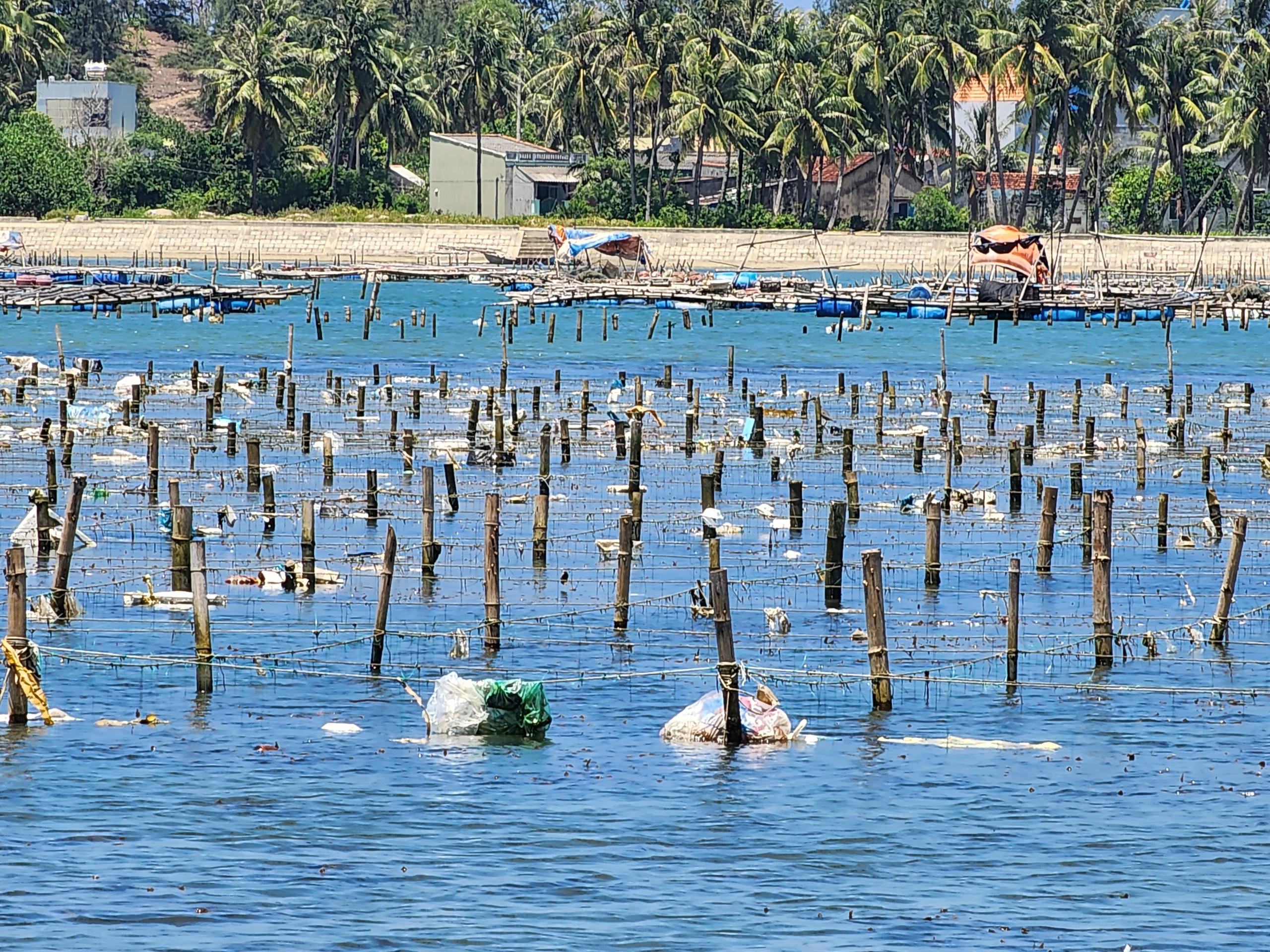 | Khu vực nuôi trồng thuỷ sản bị rác "bủa vây". |