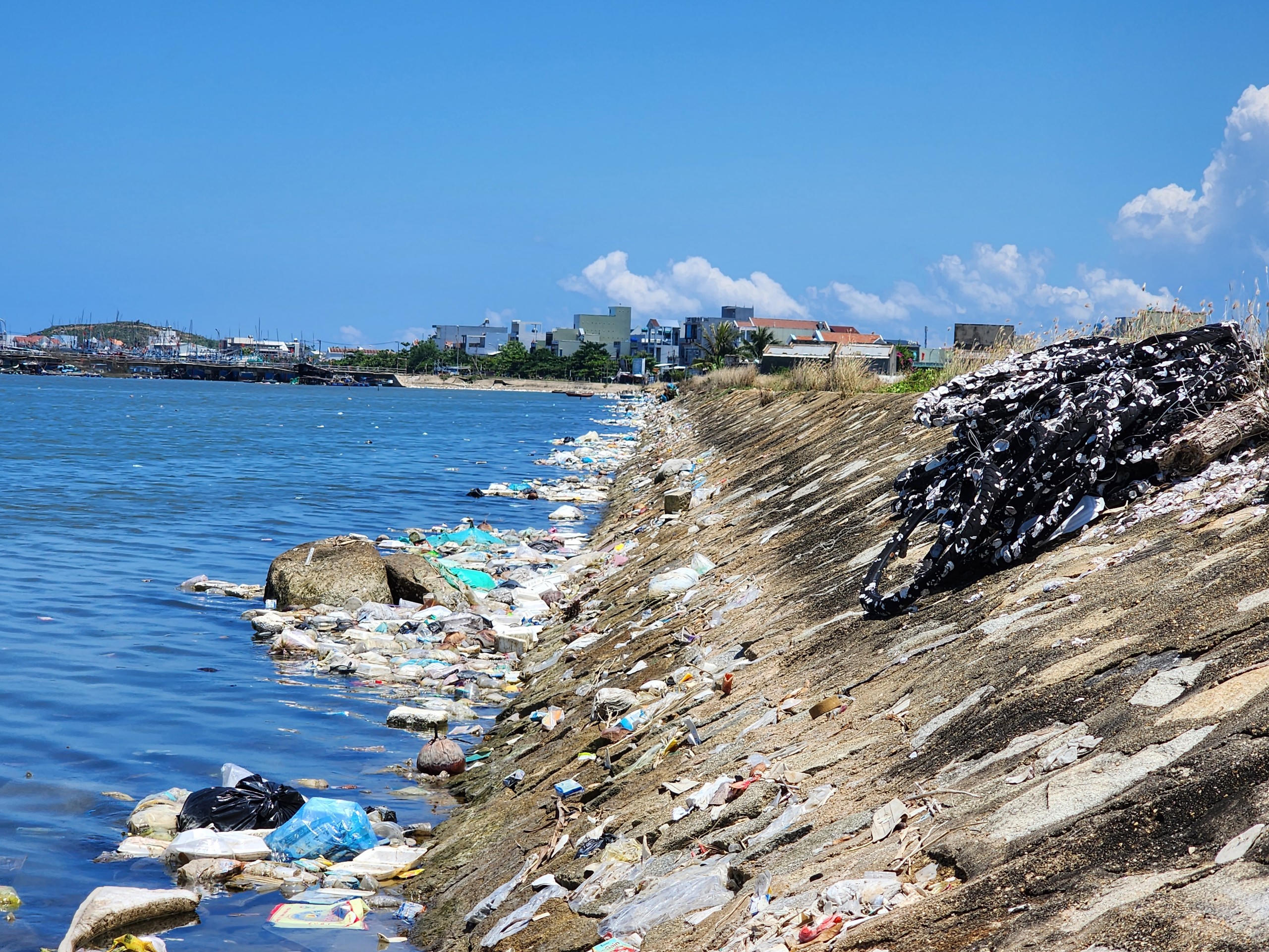 | Rác phủ trắng bờ đầm nước mặn Sa Huỳnh. |