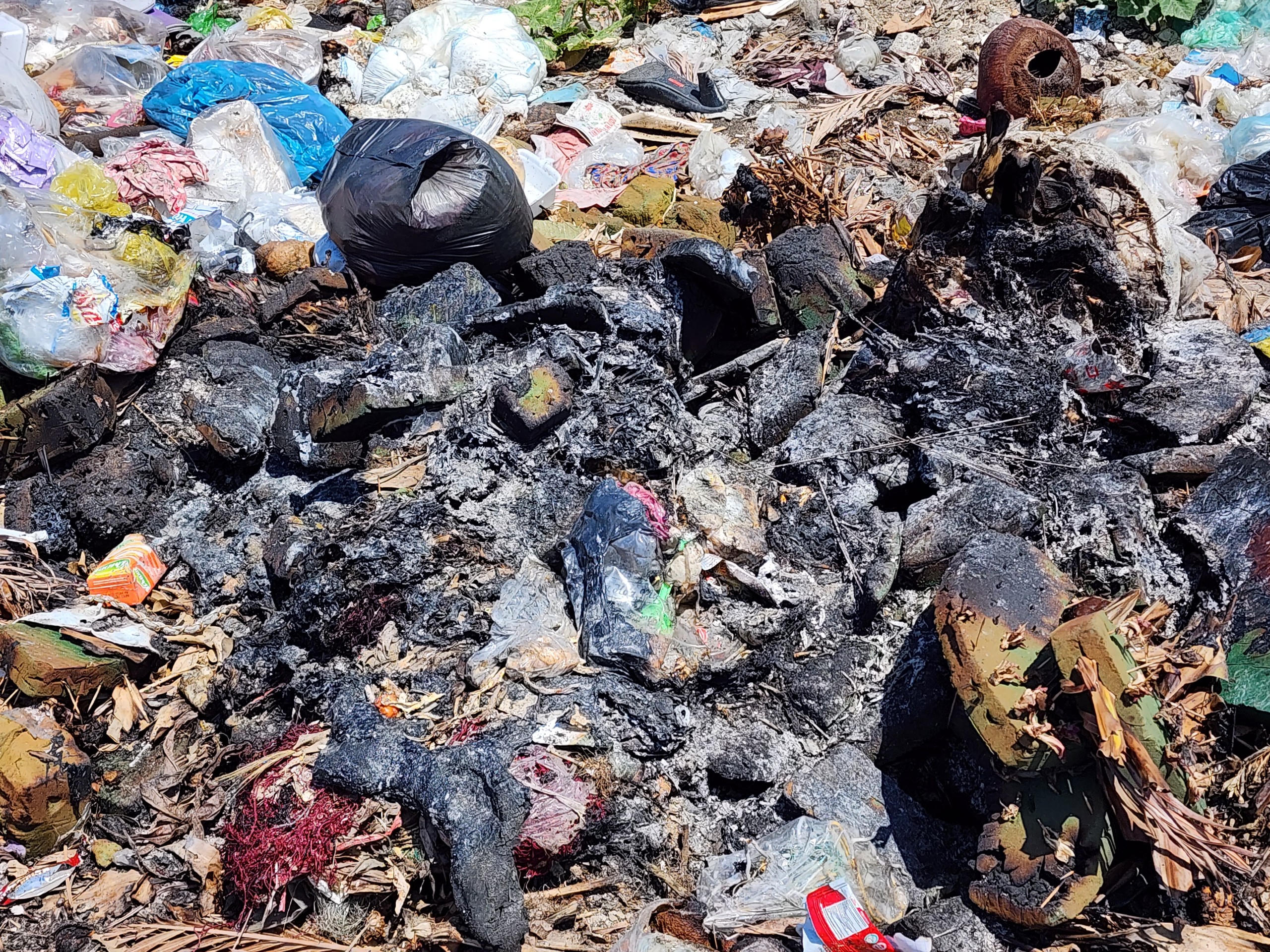 | Rác được người dân đốt sau khi vất ở khu đất trống. |