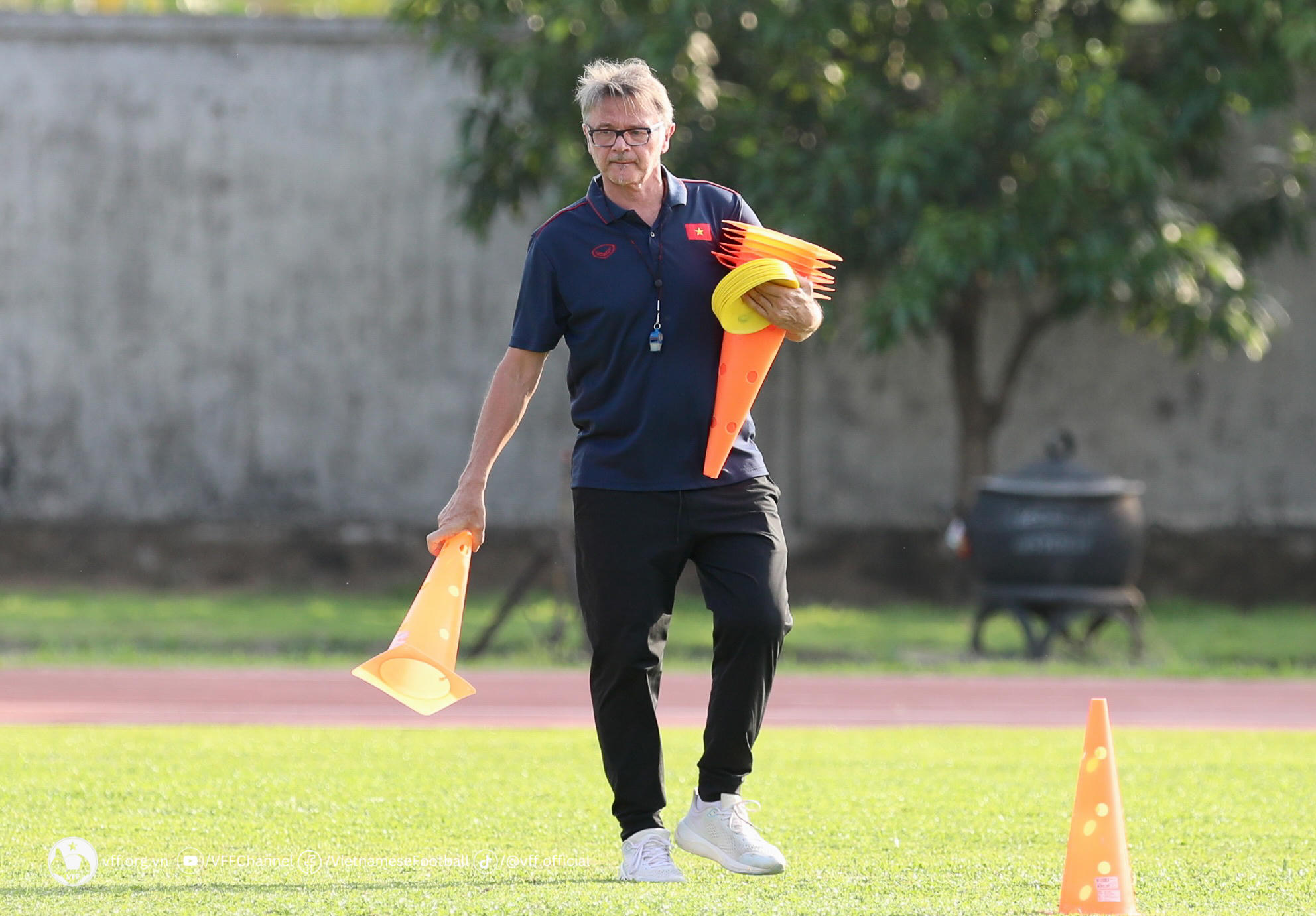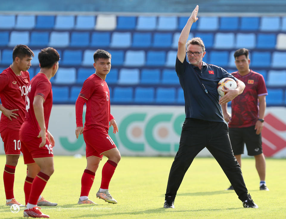 HLV Philippe Troussier cũng cố gắng tìm cách giảm tải áp lực cho các học trò, giúp họ có thể bước vào trận đấu với sự tự tin và tinh thần tốt nhất (ảnh VFF) |