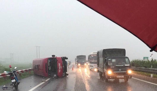 Hình ảnh thảm hại về xe khách lật trên cao tốc Pháp Vân - Cầu Giẽ
