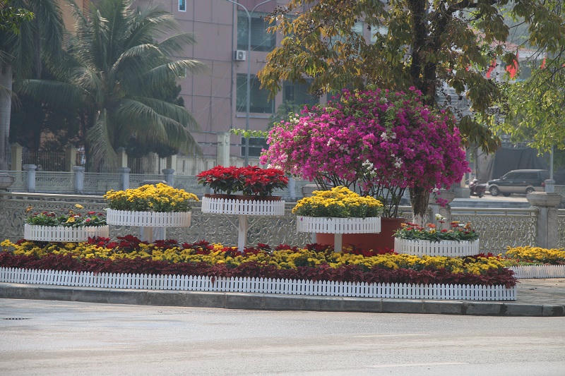Đến thời điểm này, nhiều tuyến đường được trang trí hoa, cây cảnh, hệ thống điện chiếu sáng trên các tuyến đường Trần Đăng Ninh, Nguyễn Hữu Thọ, Võ Nguyên Giáp… |