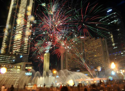 Trung tâm thủ đô Jakarta, Indonesia, rực sáng trong màn pháo hoa nhiều màu sắc. Người dân từ khắp nơi đã đổ về đây để cùng đếm ngược tời thời khắc bước sang năm mới 2012.
