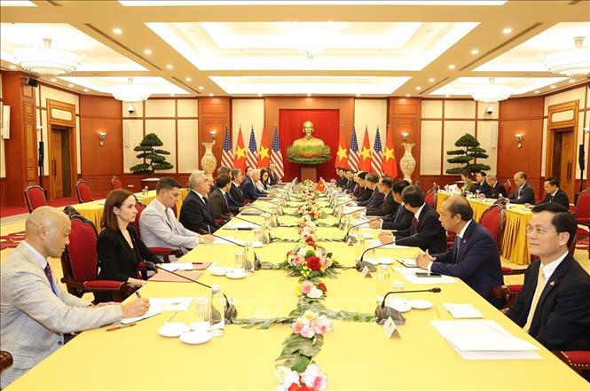 Chiều 10/9/2023, tại Văn phòng Trung ương Đảng, Tổng Bí thư Nguyễn Phú Trọng hội đàm với Tổng thống Hợp chúng quốc Hoa Kỳ Joseph R. Biden, Jr. thăm cấp Nhà nước tới Việt Nam.