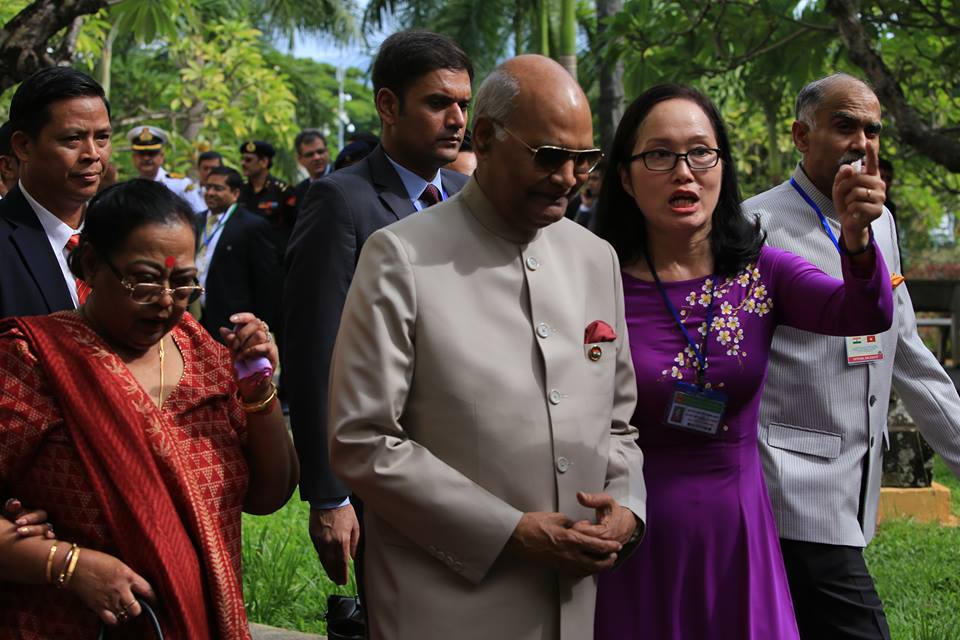 Tại Quảng Nam: Tổng thống Ấn Độ Ram Nath Kovind cùng phu nhân đã đặt chân đến khu di tích đền tháp Mỹ Sơn (xã Duy Phú, huyện Duy Xuyên).