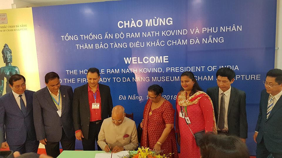 Sau khi tham quan, Tổng thống Ấn Độ Ram Nath Kovind viết dòng lưu niệm sau khi thăm Bảo tàng Điêu khắc Chăm Đà Nẵng: “Tôi rất hân hạnh được đến thăm Bảo tàng Chăm. Nơi này có một bộ sưu tập phong phú các cổ vật của nền văn minh Ấn-Chăm. Đây cũng là một điển hình rõ nét về sự ảnh hưởng văn hóa giữa Việt Nam và Ấn Độ... Tôi đặc biệt ấn tượng bởi đài thờ lớn Trà Kiệu và Shiralingam - một kiệt tác của nghệ thuật Chăm và một trong những di sản quốc gia Việt Nam. Tôi cảm ơn UBND TP Đà Nẵng và Bảo tàng Chăm về sự thân thiện và nhiệt tình của họ. Gửi lời chúc tốt đẹp nhất của tôi tới Bảo tàng”.