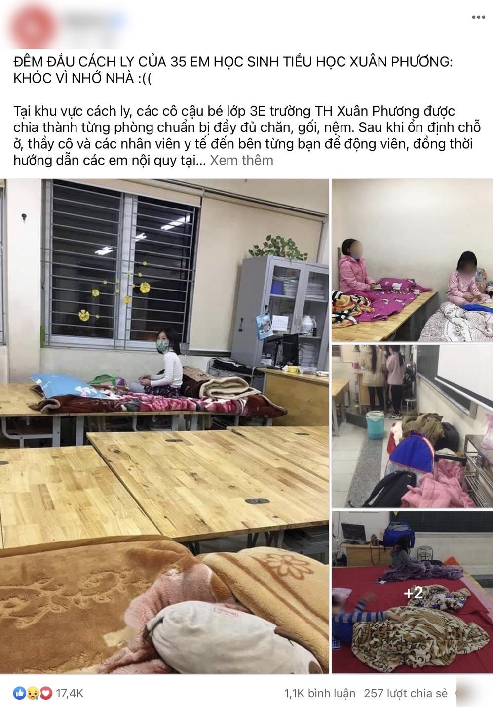 Mới đây nhất, đông đảo dư luận trên mạng xã hội không khỏi bàn tán xôn xao trước loạt hình ảnh được chia sẻ về các học sinh trường tiểu học Xuân Phương trong khu cách ly.