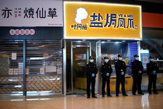 | Lực lượng an ninh túc trực tại một nhà ga thuộc Vũ Hán. Ảnh: Reuters. |