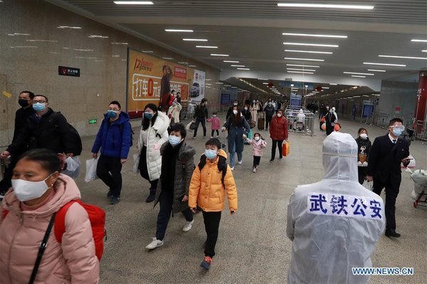 | Người dân rời ga tàu Hankou sau khi đi qua chốt kiểm tra y tế. Ảnh: THX |