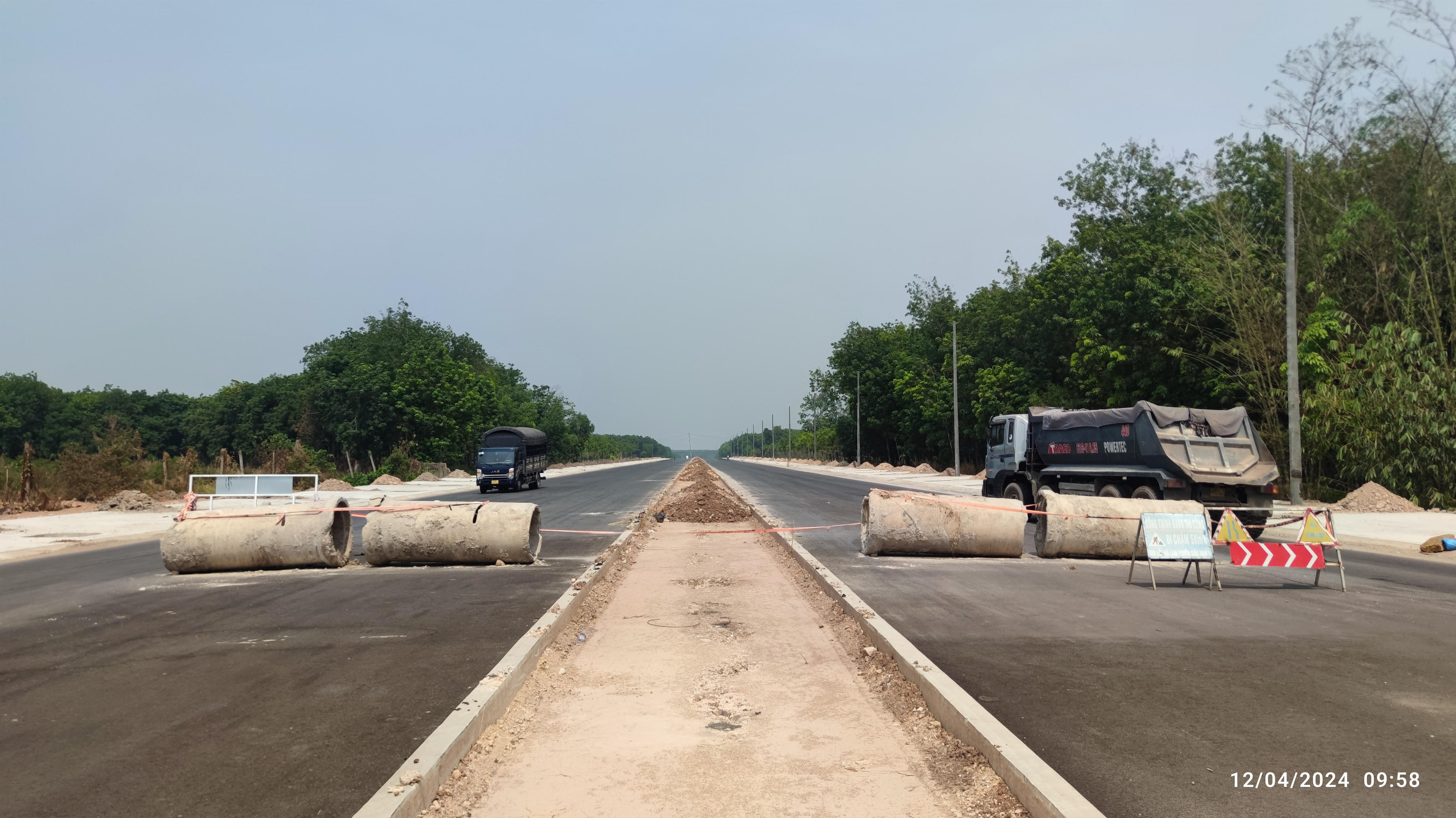 Một số đoạn đường thi công xong thảm nhựa, nhiều xe ô tô đã có thể chạy vào. |
