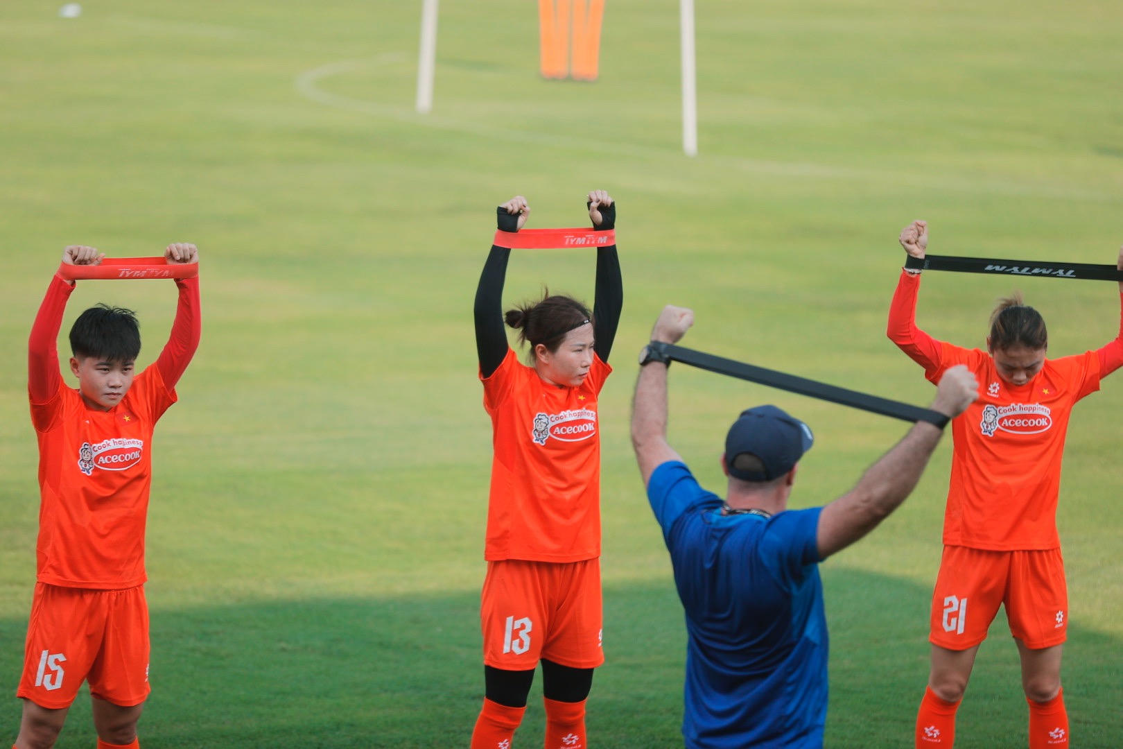 Các bài tập đa dạng từ phía HLV thể lực Cedric Roger đã giải phóng sức ì cho các cầu thủ. Bên cạnh đó, vị chuyên gia người Pháp cũng khéo léo lồng ghép các thử thách, trò chơi để tạo thêm sự hứng khởi cho các nữ tuyển thủ.