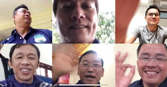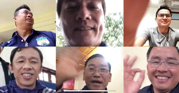 Do chưa thể sang Việt Nam, HLV Kiatisak phải gọi video call với các trợ lý rồi sau đó các trợ lý ra sân giám sát cầu thủ tập luyện.
