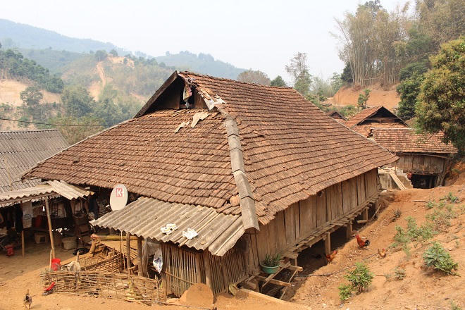 Bên căn nhà sàn xiêu vẹo, ông Lò Văn Phiến giãi bày: “Nhiều năm nay, căn nhà sàn 3 gian gia đình tôi mặc dù xuống cấp nhưng cũng không dám sửa chữa. Nhà có 8 nhân khẩu, thu nhập chủ yếu vào 2ha đất sản xuất nông nghiệp và ao cá 500m2.