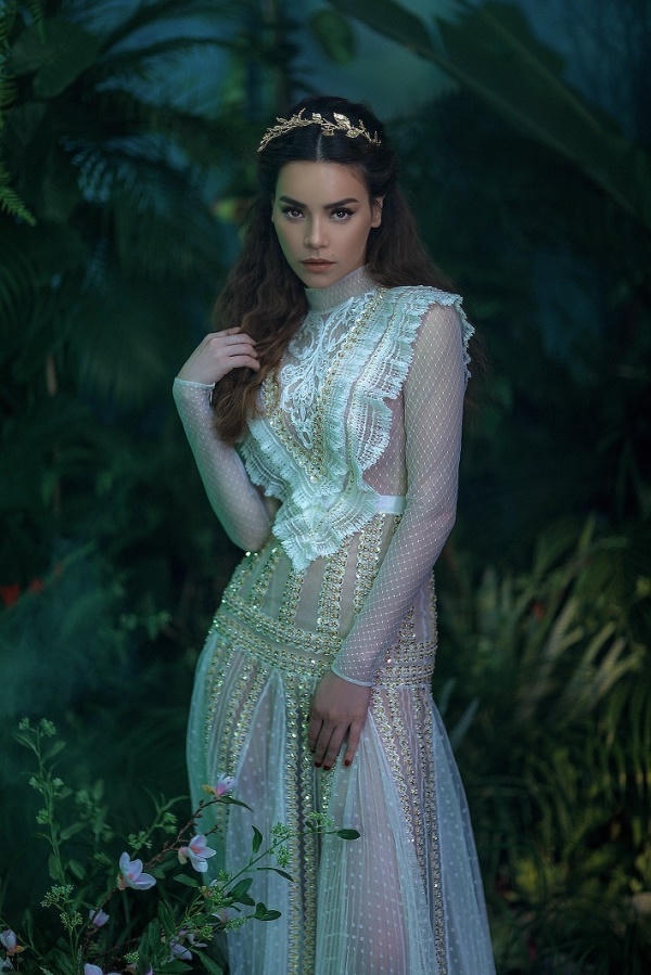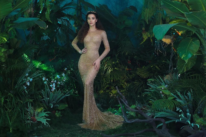 Hồ Ngọc Hà là một trong ba nàng thơ của bộ sưu tập "She's A Goddess". Trong bộ ảnh mới nhất, cô thể hiện các thiết kế mới này với phong cách quyến rũ, huyền bí.