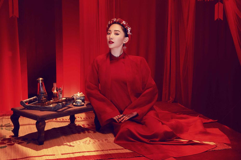 Hình ảnh trong MV, Tóc Tiên nền nã trong trang phục truyền thống |