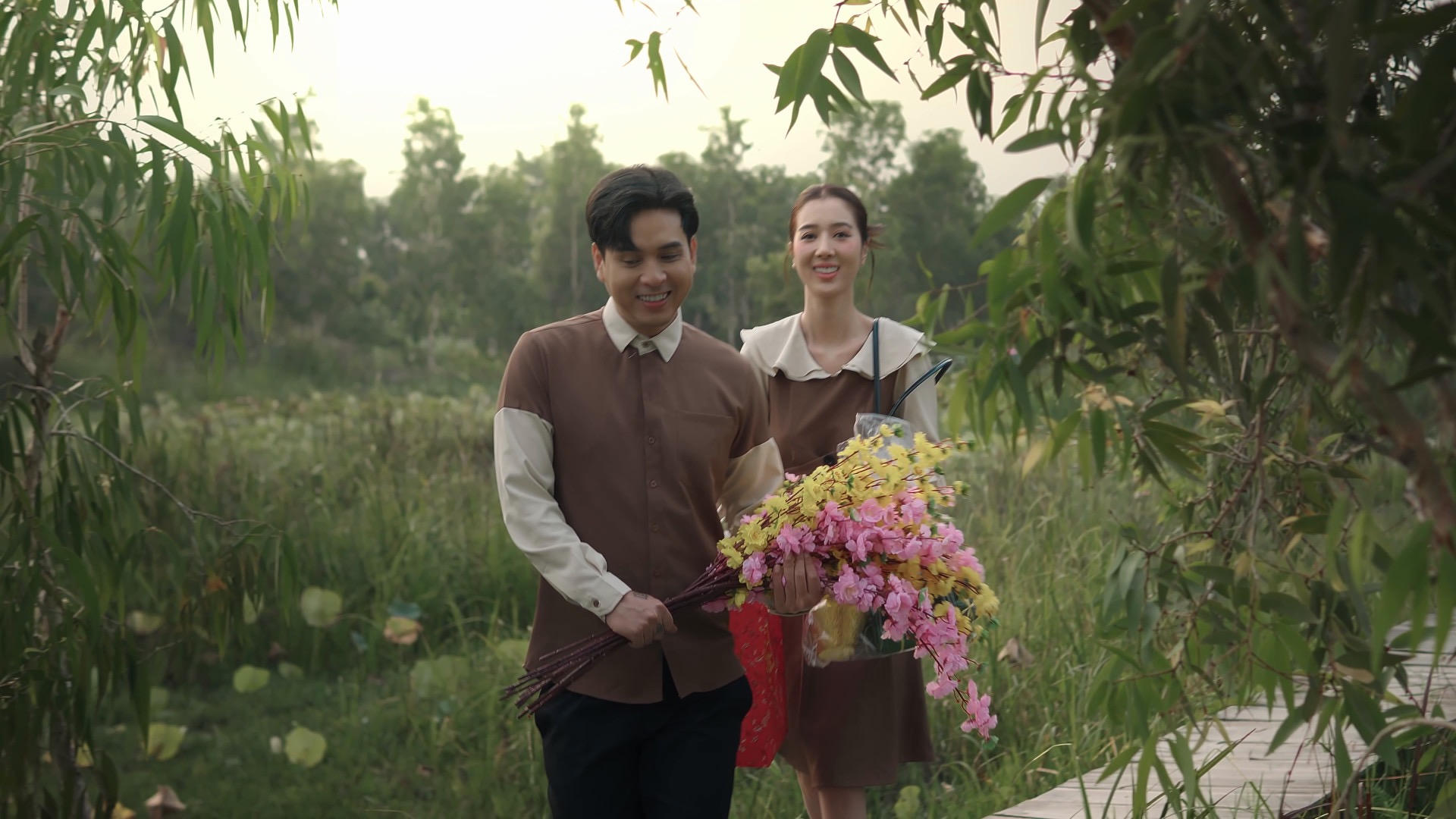 Với mong muốn tái hiện lại không khí Tết xưa, đậm chất miền Tây, Hồ Quang Hiếu đã cho phục dựng lại bối cảnh ngôi nhà tranh, làng hoa, chợ nổi… Anh chọn bối cảnh ở Đồng Tháp, với ê-kíp hơn 50 người, mất gần 7 ngày làm việc.
