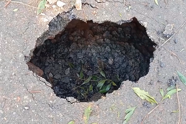 Hố sụt sâu 3m bất ngờ xuất hiện trên Quốc lộ 9B ở Quảng Trị