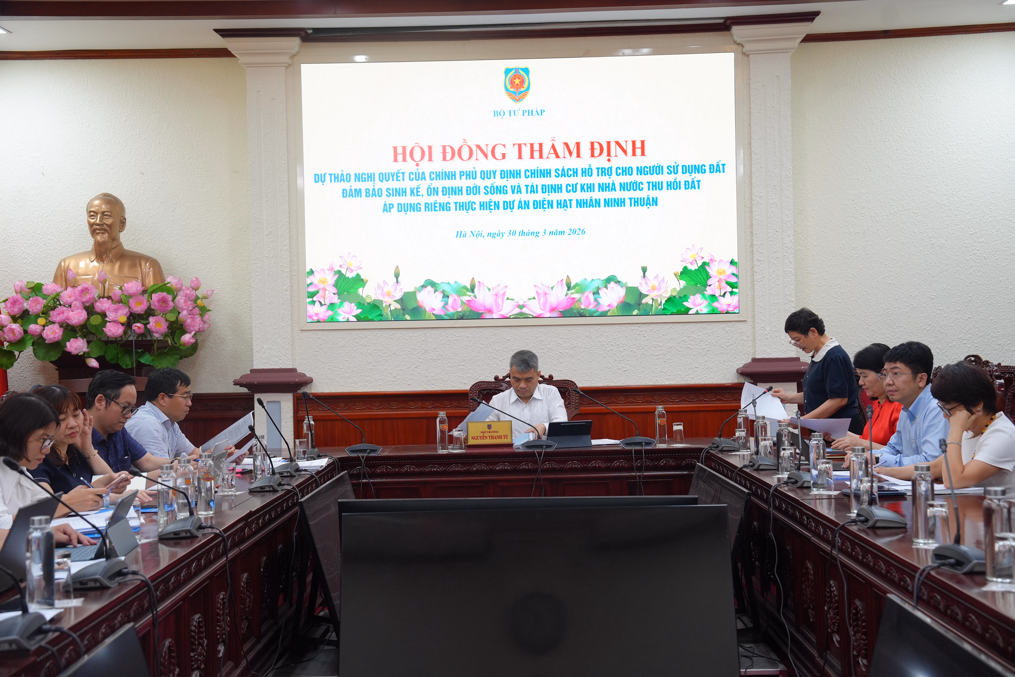 Đây là phát biểu của Thứ trưởng Nguyễn Thanh Tú, Chủ tịch Hội đồng tại cuộc họp Hội đồng thẩm định dự thảo Nghị quyết của Chính phủ quy định chính sách hỗ trợ cho người sử dụng đất, đảm bảo sinh kế, ổn định đời sống và tái định cư khi Nhà nước thu hồi đất áp dụng riêng thực hiện dự án điện hạt nhân Ninh Thuận, diễn ra chiều 30/3.