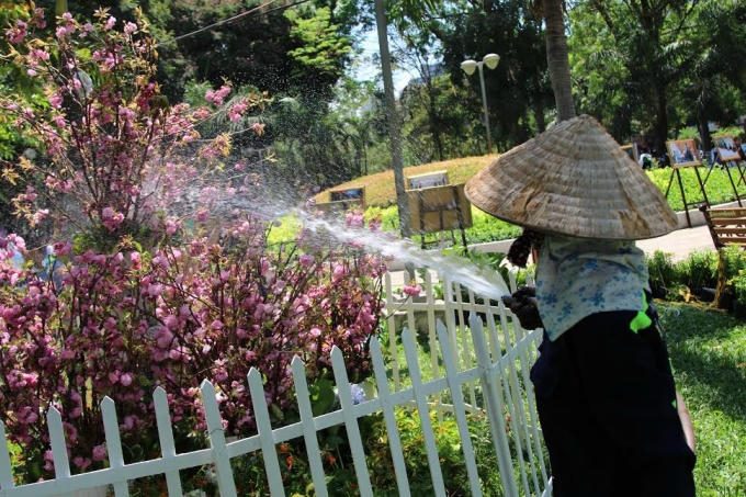 Tại Công viên 23/9 TP Hồ Chí Minh, Ban tổ chức làm nhà kính có máy lạnh và phun sương để chống hoa héo úa do thời tiết đang nắng nóng cực điểm. Tại Đồng Nai, nhà kính tương tự cũng được dựng lên để trưng bày hoa. Nhờ vậy, dù 3 ngày qua thời tiết phía Nam lên tới 42 độ C, nắng chang chang song người dân vẫn được chiêm ngưỡng hoa anh đào tươi thắm.