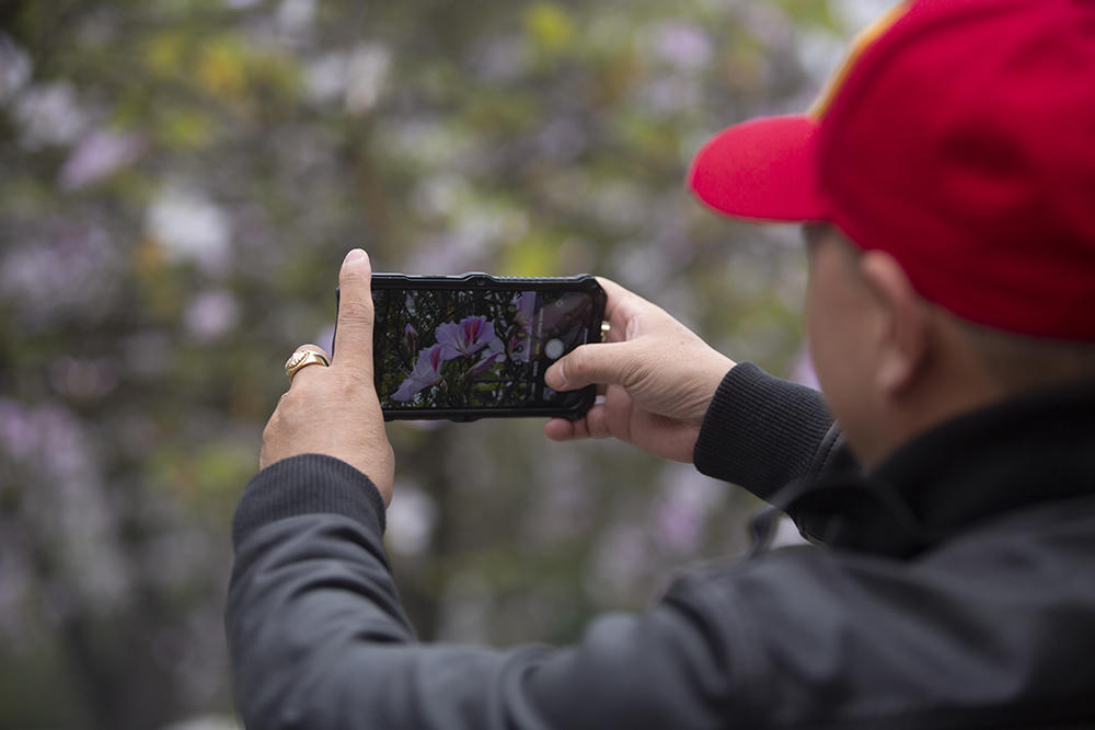 Anh Kiên (quận Cầu Giấy) đam mê chụp ảnh chia sẻ: “Năm nào tôi cũng chờ mỗi độ xuân về để lên phố Bắc Sơn, Hoàng Diệu, ghi lại những khoảnh khắc hoa ban bung nở rực rỡ”.