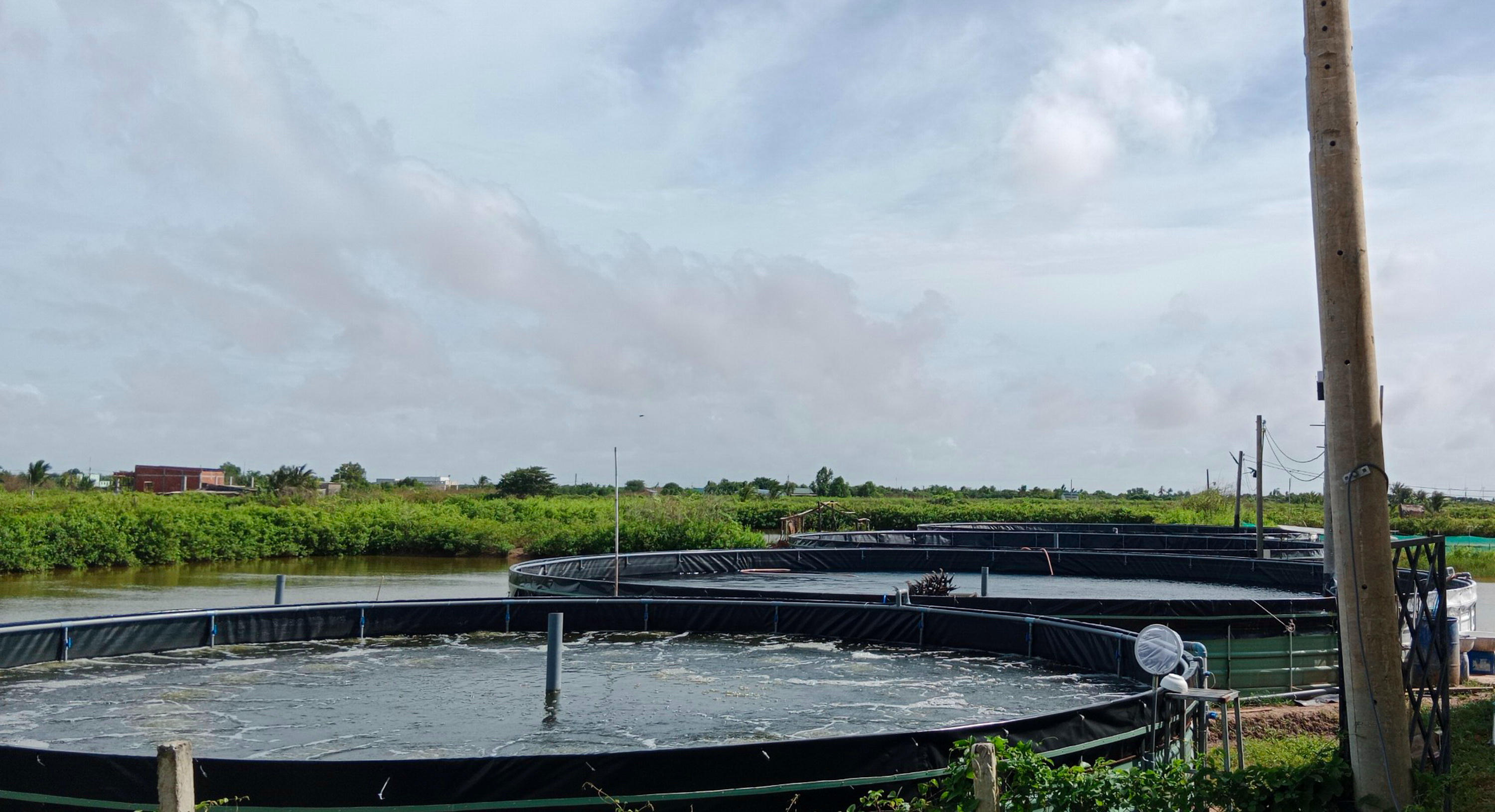 Người dân nuôi tôm ứng dụng công nghệ cao ở xã Vĩnh Hậu (huyện Hoà Bình). |
