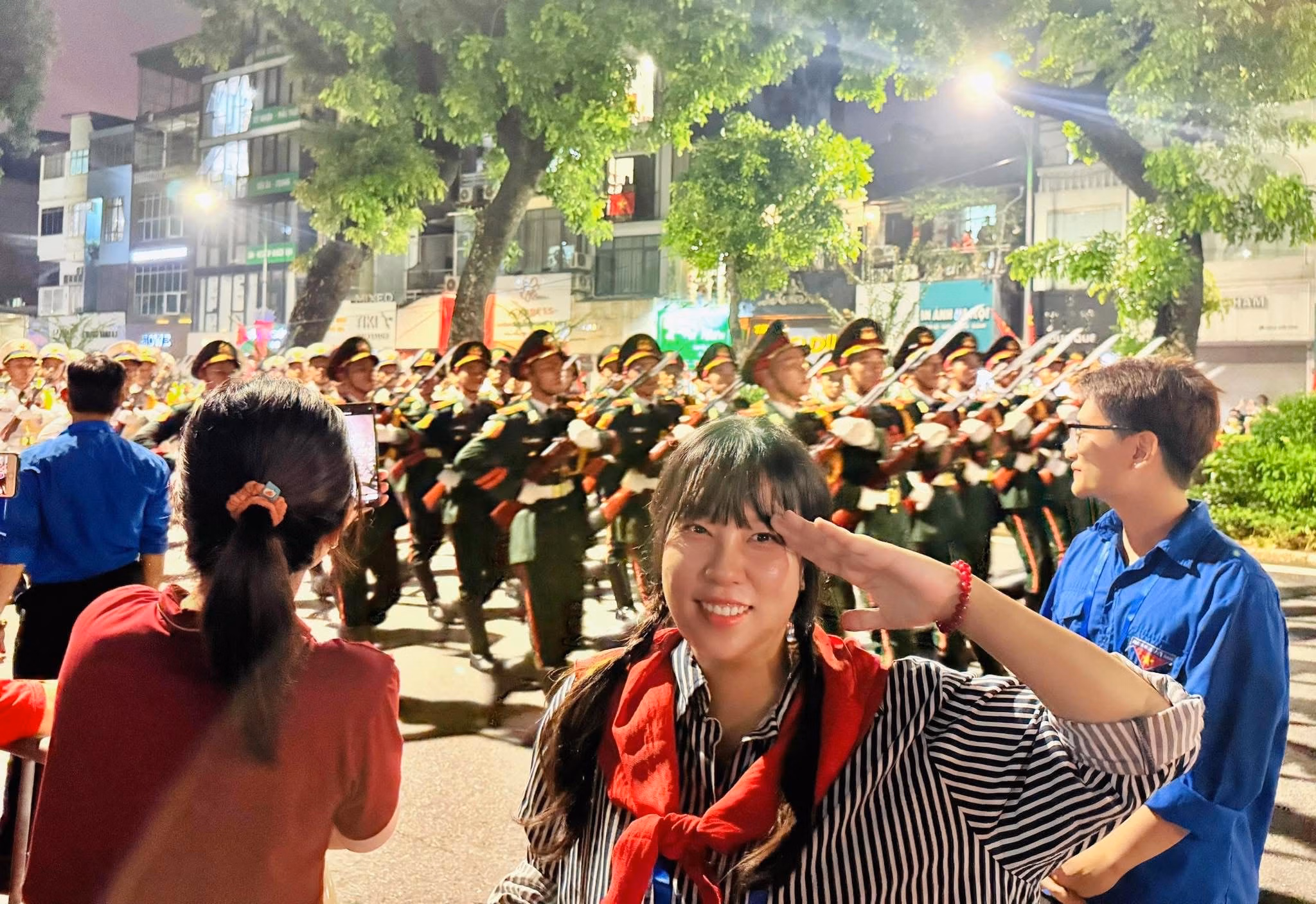 (PLVN) - Trong buổi Sơ duyệt cấp Nhà nước diễn ra tối 27/8, đông đảo người dân và du khách đã đứng dọc hai bên đường, rộn ràng tiếng reo hò, ánh mắt không giấu được niềm xúc động, thán phục khi các khối diễu binh trang nghiêm tiến qua.