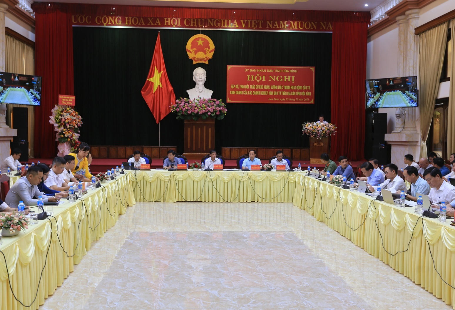 Bên cạnh đó, tỉnh Hòa Bình thường xuyên tiếp xúc đối thoại với các nhà đầu tư, doanh nghiệp; duy trì hoạt động của Ban Chỉ đạo các dự án trọng điểm; thành lập tổ công tác tháo gỡ khó khăn, vướng mắc hỗ trợ doanh nghiệp, nhà đầu tư, dự án trên địa bàn tỉnh.