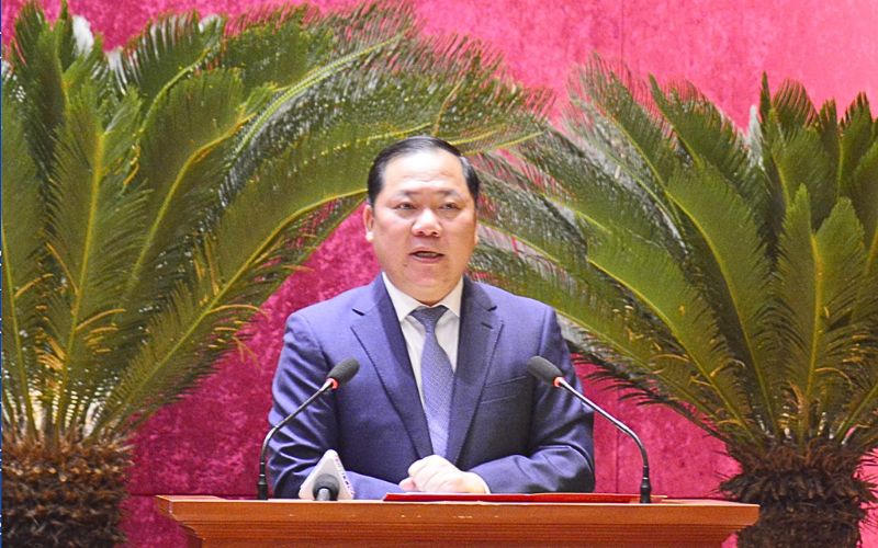 | Bí thư Tỉnh ủy Hòa Bình Nguyễn Phi Long phát biểu tại Hội nghị. Ảnh: Lê Chung |