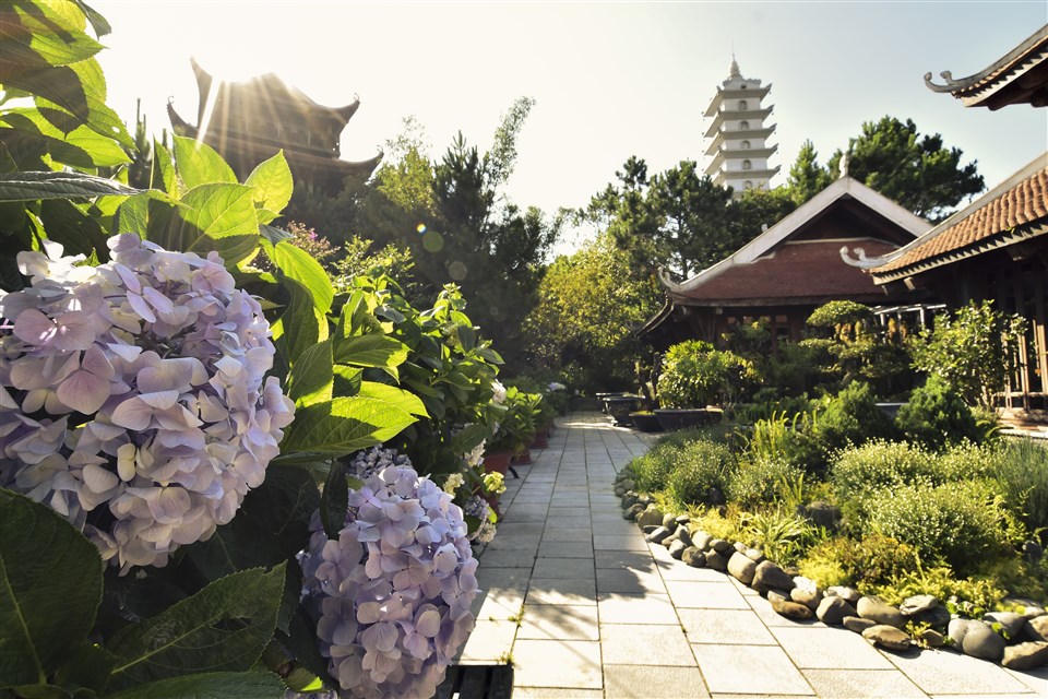 Nằm nép mình giữa không gian xanh yên bình và những khóm hoa tô điểm khắp chốn, khu tâm linh trên đỉnh Bà Nà đẹp một cách nao lòng