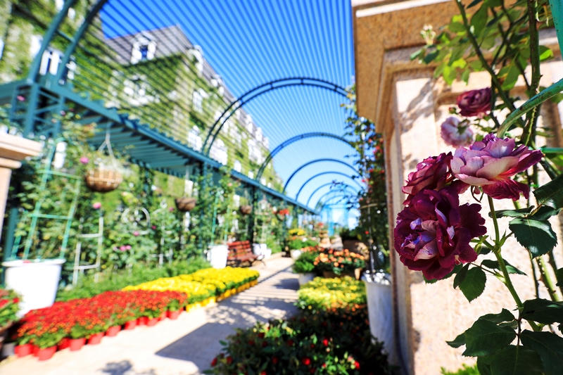 Khu vực quảng trường Du Dome dù vắng vẻ và bình yên trong những ngày Bà Nà “ngủ đông”, song vẫn ngập tràn sức sống nhờ những bông hoa đủ loại rạng rỡ khoe sắc. Những mái ngói đỏ tươi và những ban công đầy hoa rực rỡ của các tòa lâu đài trong khu làng Pháp càng tô điểm cho bức tranh Bà Nà thêm sắc màu, sinh động