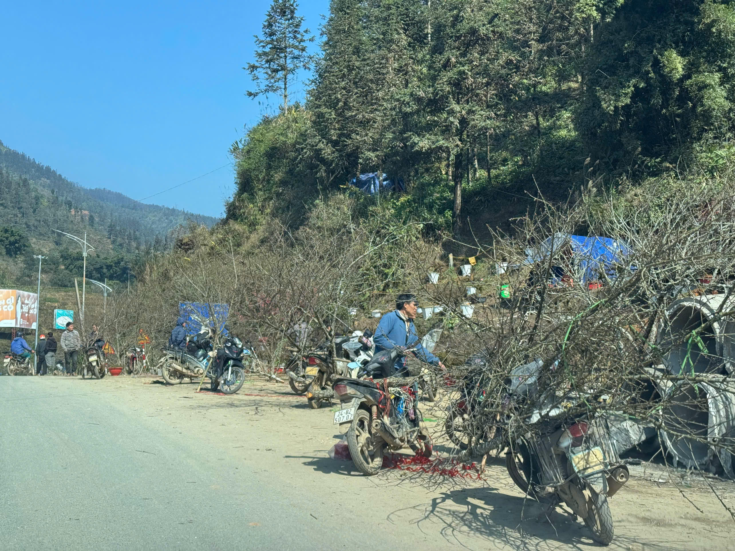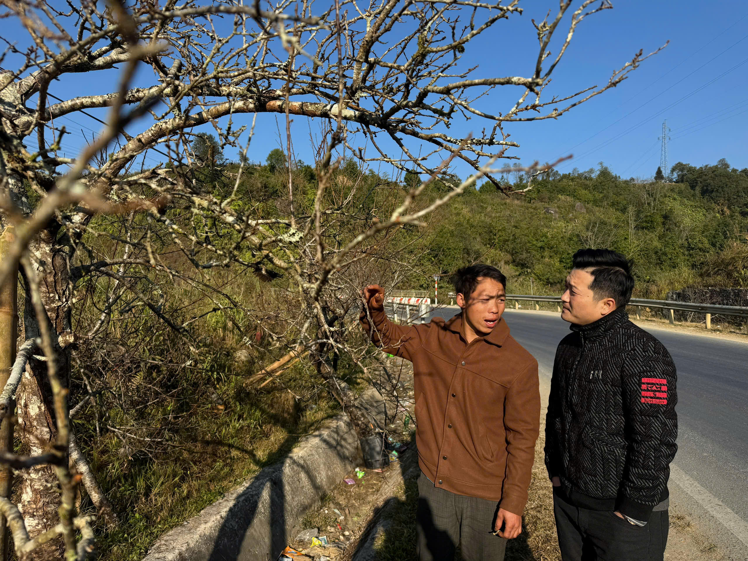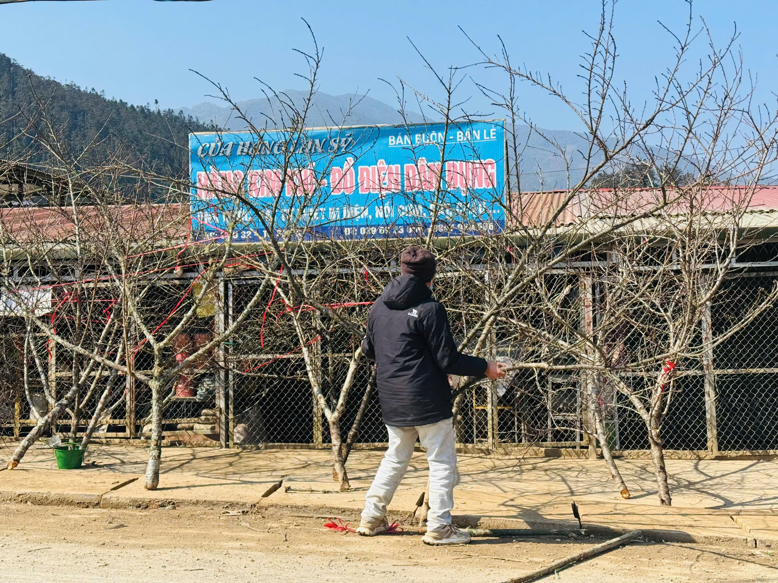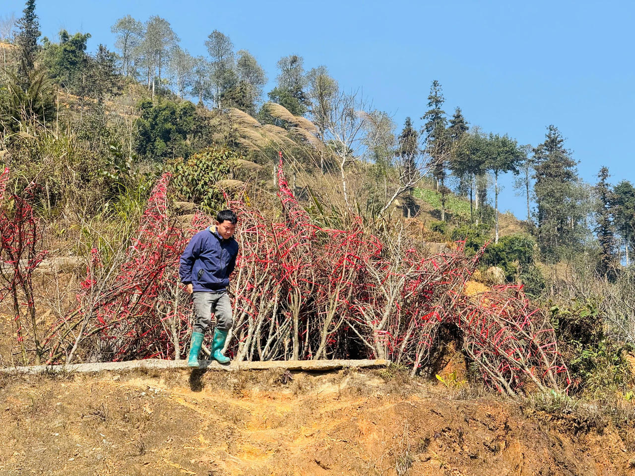 Anh Lý Gia, người dân xã Giang Ma, huyện Tam Đường, tỉnh Lai Châu, chia sẻ: "Đào năm nay đẹp hơn mọi năm, thời tiết cũng phù hợp nên sẽ nở đúng dịp Tết. Chúng tôi phải dựng lều đốt lửa để trông đào từ đầu tháng tới nay. Mệt nhưng vui vì thấy nhiều người yêu thích những cành đào của vùng mình. Hi vọng năm nay sẽ có một cái Tết ấm no".