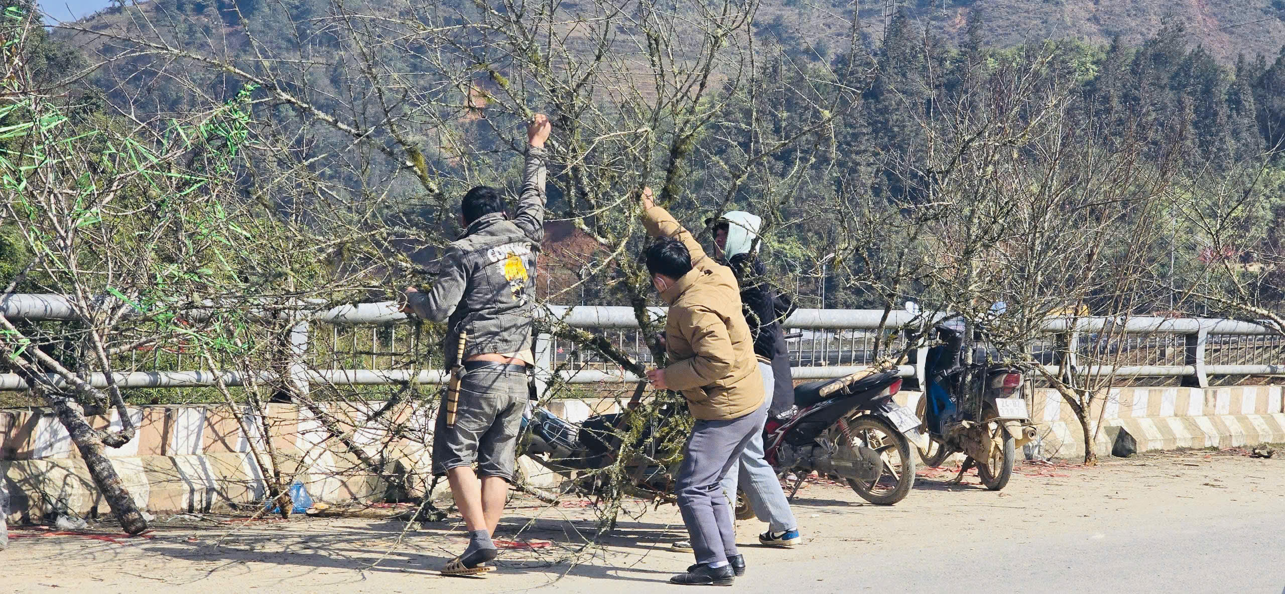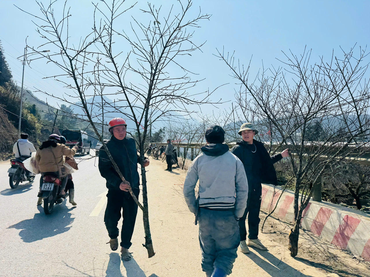 Hoa đào từ lâu đã trở thành biểu tượng của Tết cổ truyền Việt Nam. Những ngày này, bà con ở Lào Cai, Lai Châu... tấp nập cắt tỉa, vận chuyển những cành đào rực rỡ từ vườn nhà xuống bày bán dọc các tuyến đường và vận chuyển xuống thành phố lớn để bán.
