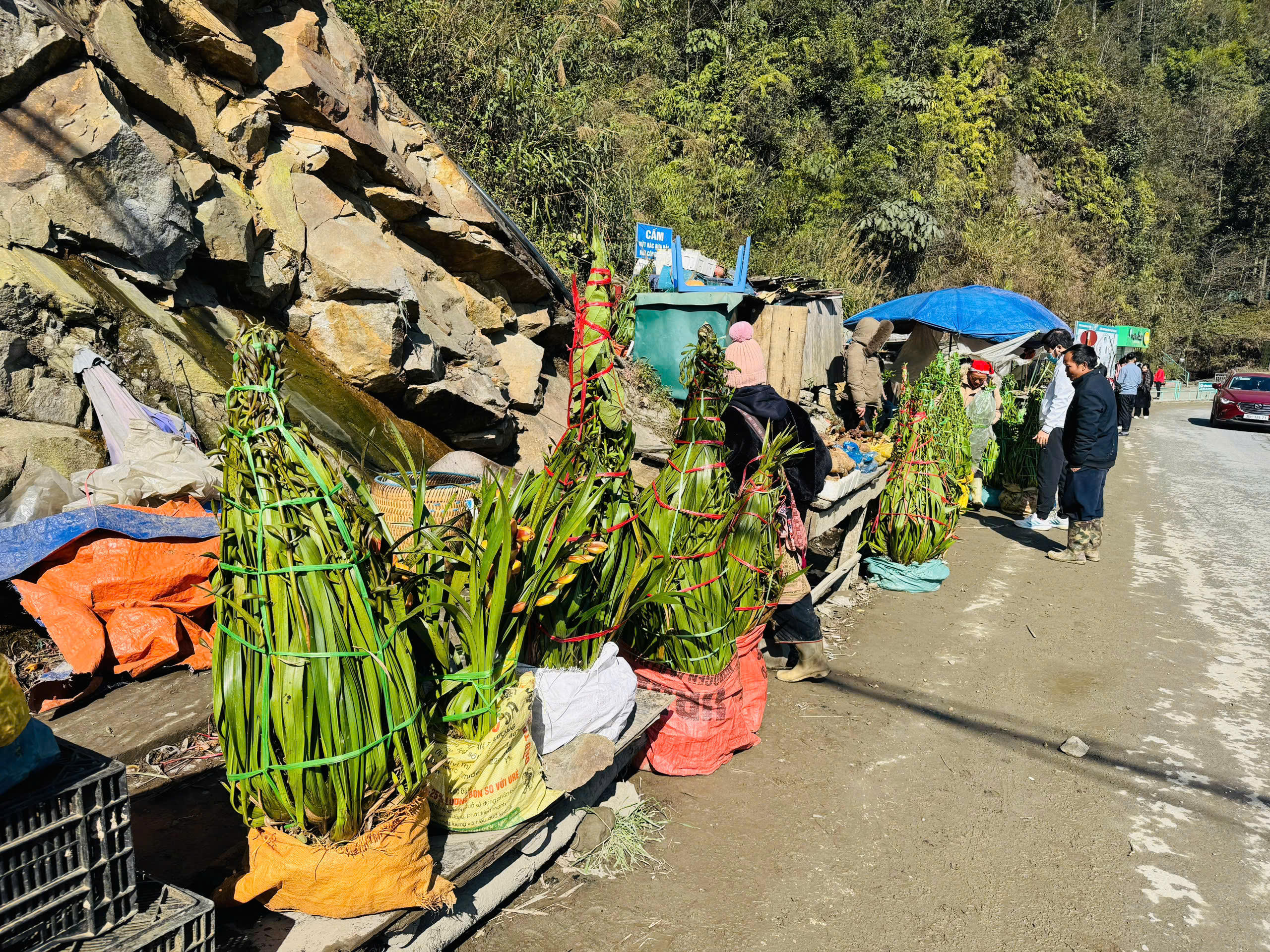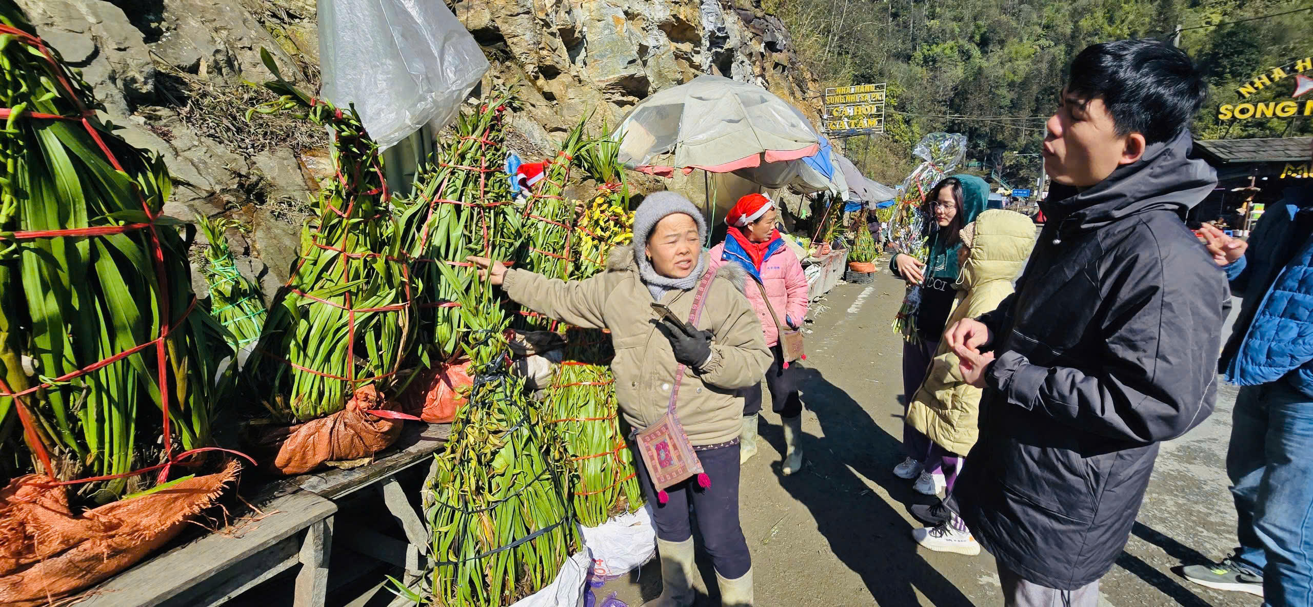 Dọc hai bên ven quốc lộ 4D kéo dài nhiều cây số từ xã Trung Chải (thị xã Sa Pa) tới xã Cốc San (thành phố Lào Cai) là các điểm tập kết hoa địa lan Sa Pa bày bán phục vụ người chơi hoa Tết.